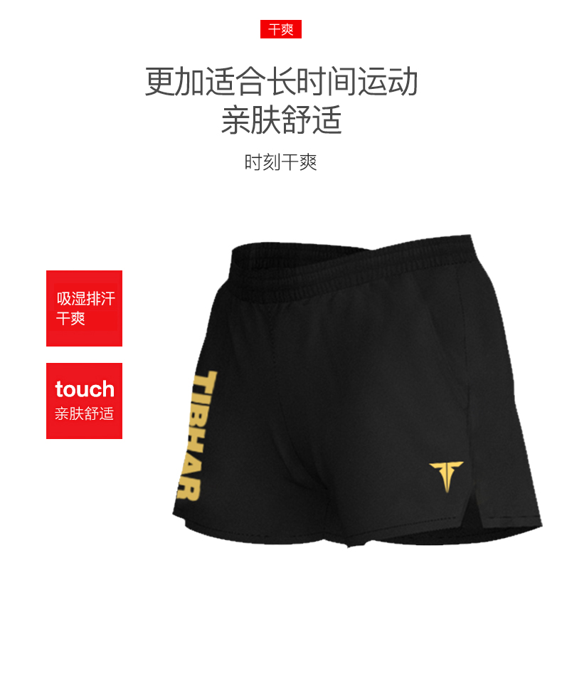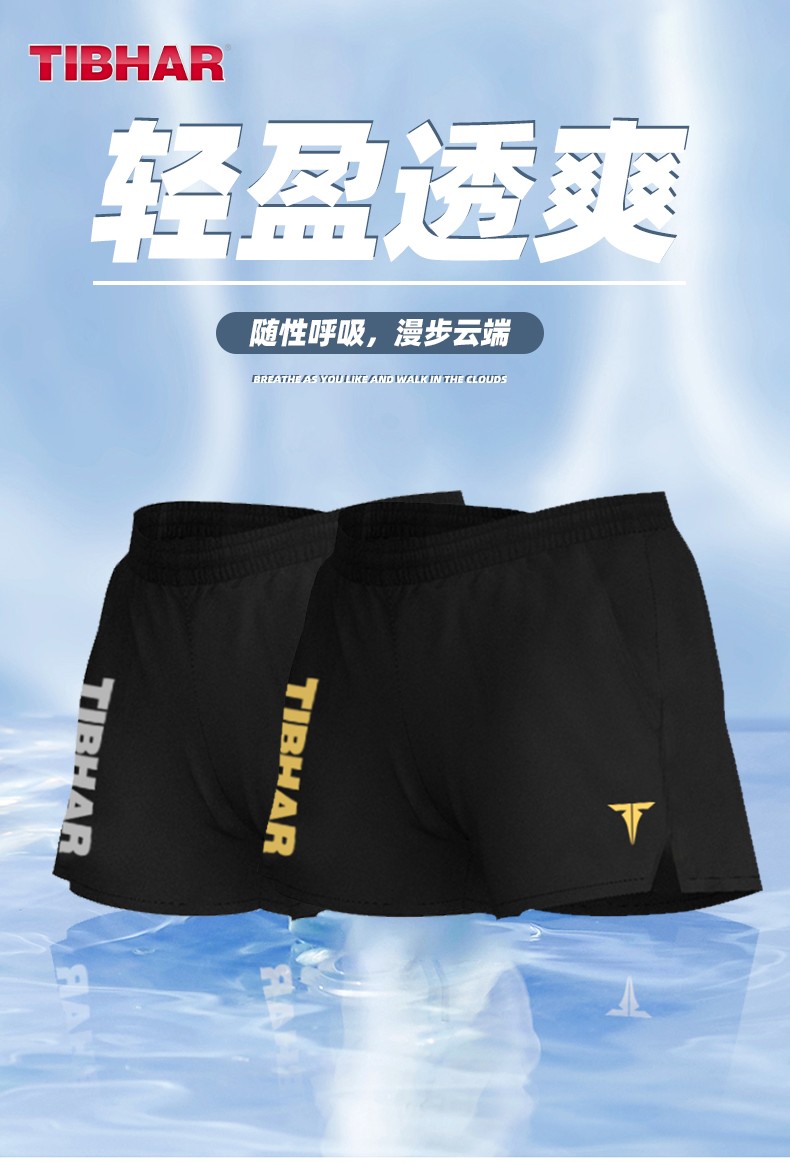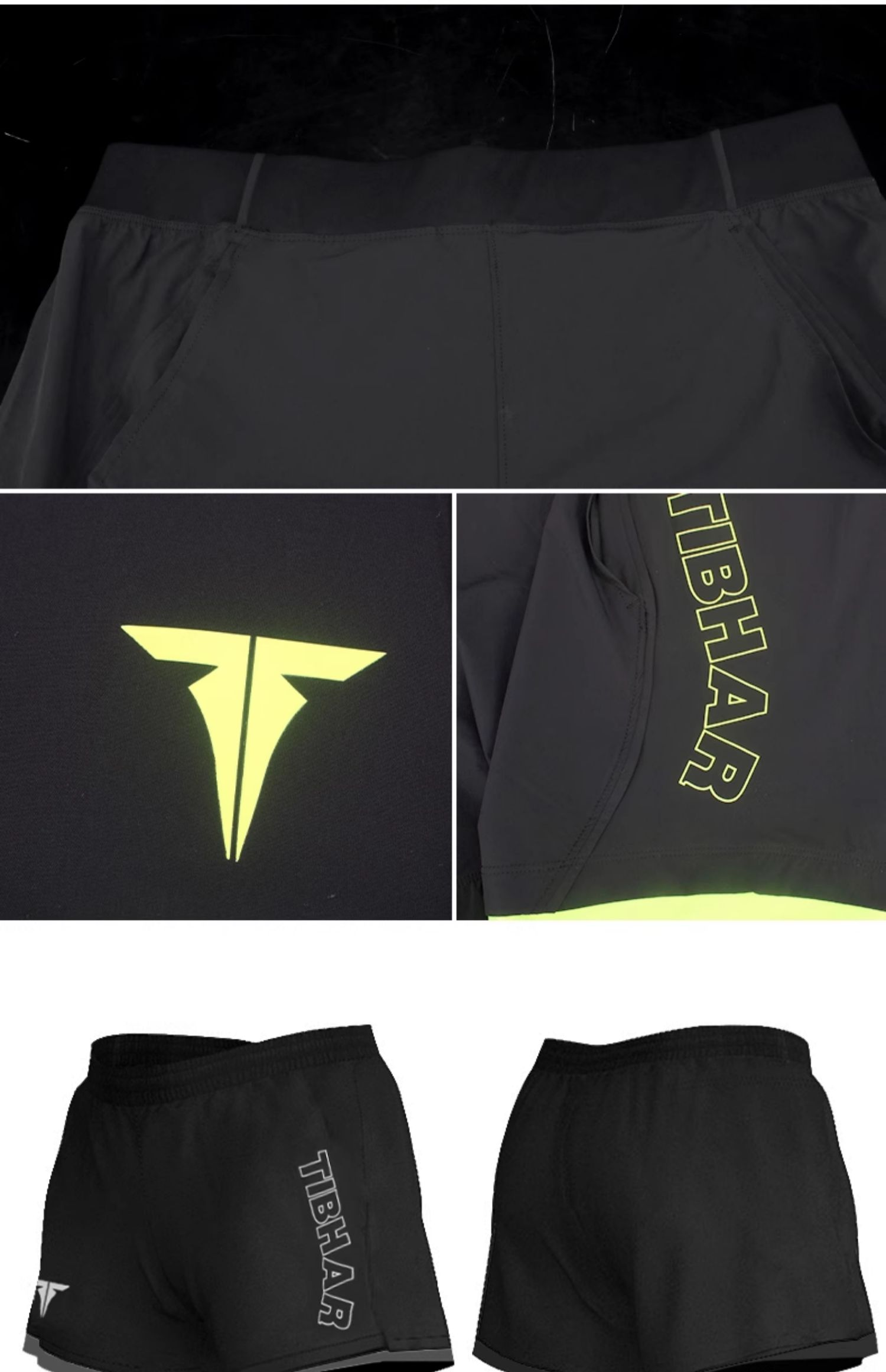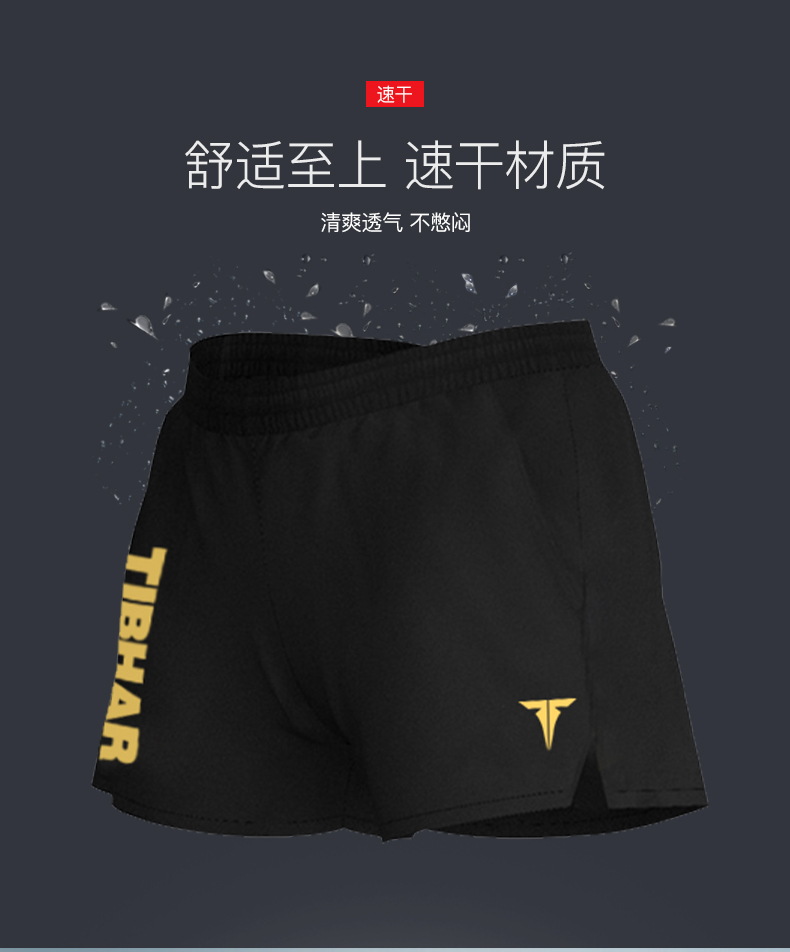 TIBHAR挺拔 力凡短裤 运动短裤 乒乓球短裤 挺拔专业比赛运动短裤 乒乓球运动短裤 030223 黑银色