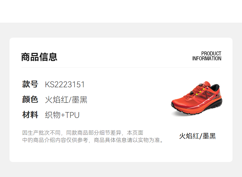 | 凯乐石男款长距离越野鞋赛事跑山鞋登山鞋高弹防滑宽楦越野跑鞋Fuga EX 2 W KS2223251-21200 火焰红/墨黑 |