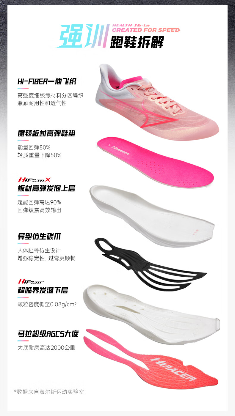 HEALTH 海尔斯 跑步鞋 强训碳爪超临界板材跑鞋 碳板竞速跑步鞋 训练缓震透气跑步运动鞋 芭比粉
