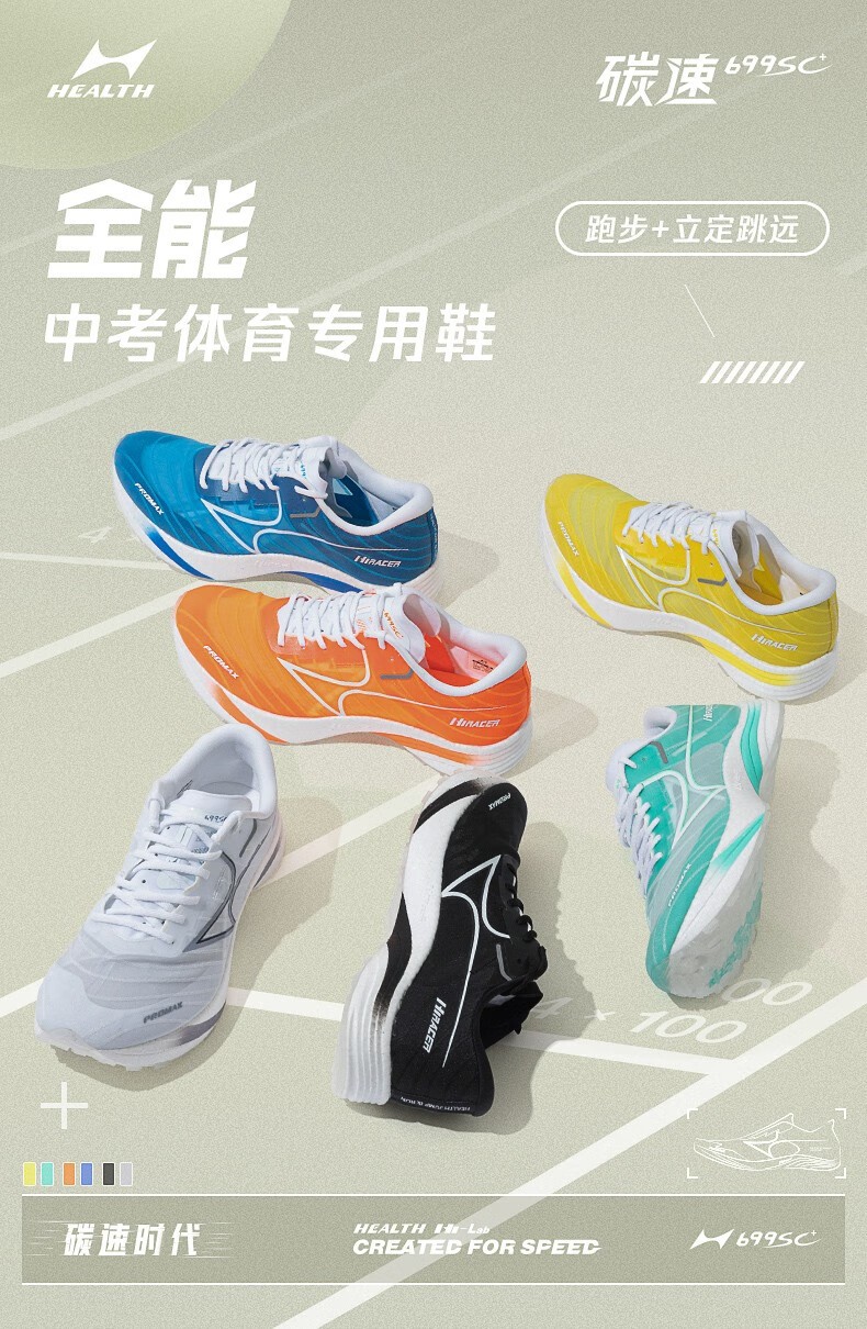 HEALTH海尔斯 体测鞋 田径跑步鞋 体考男女专用鞋 学生立定跳远训练鞋 比赛专用鞋 699SC+ 蓝色