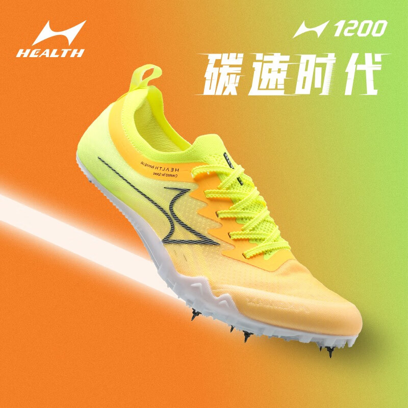 HEALTH 海尔斯 跑钉鞋 田径中短跑钉鞋 男女专业训练比赛鞋 短跑全掌冲刺钉鞋 1200 桔/荧光绿