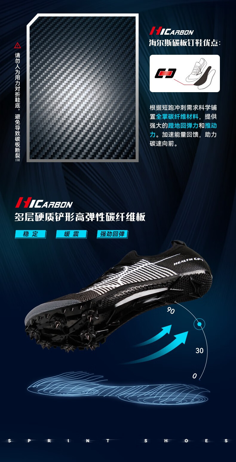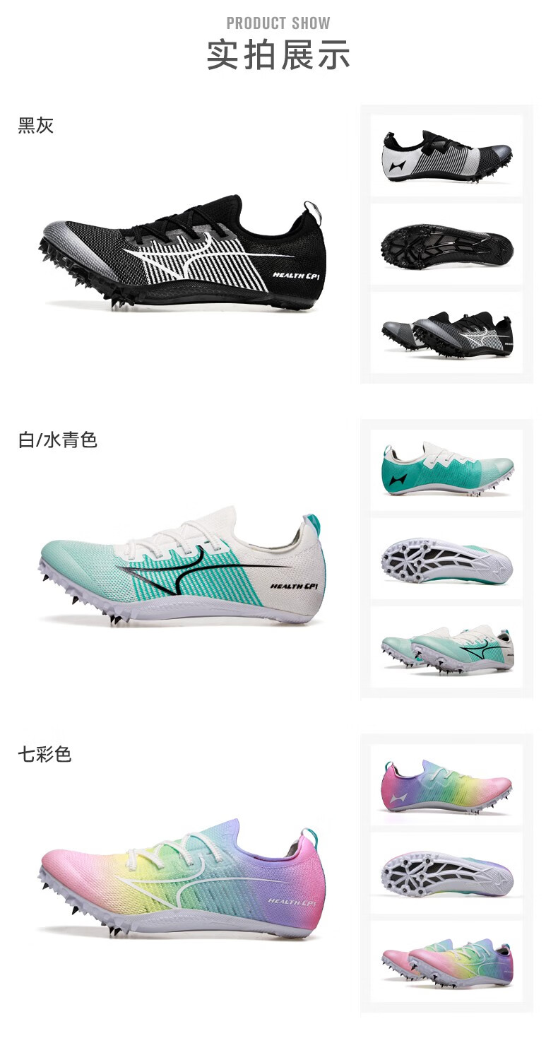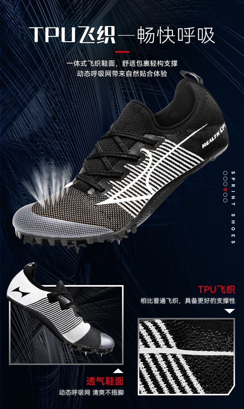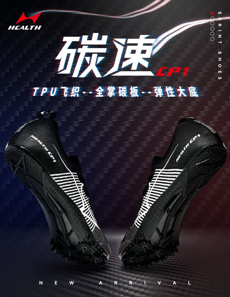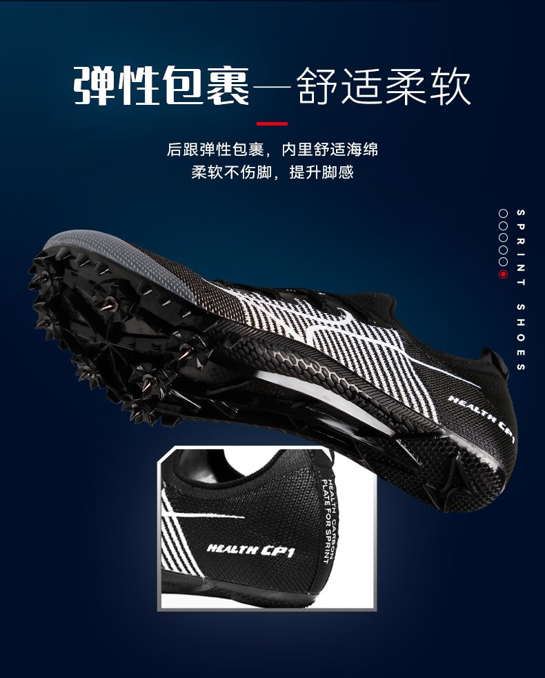HEALTH 海尔斯 跑钉鞋 田径碳速跑鞋 全掌碳板男女学生专业短跑比赛冲刺田径钉子鞋 CP1 黑灰色