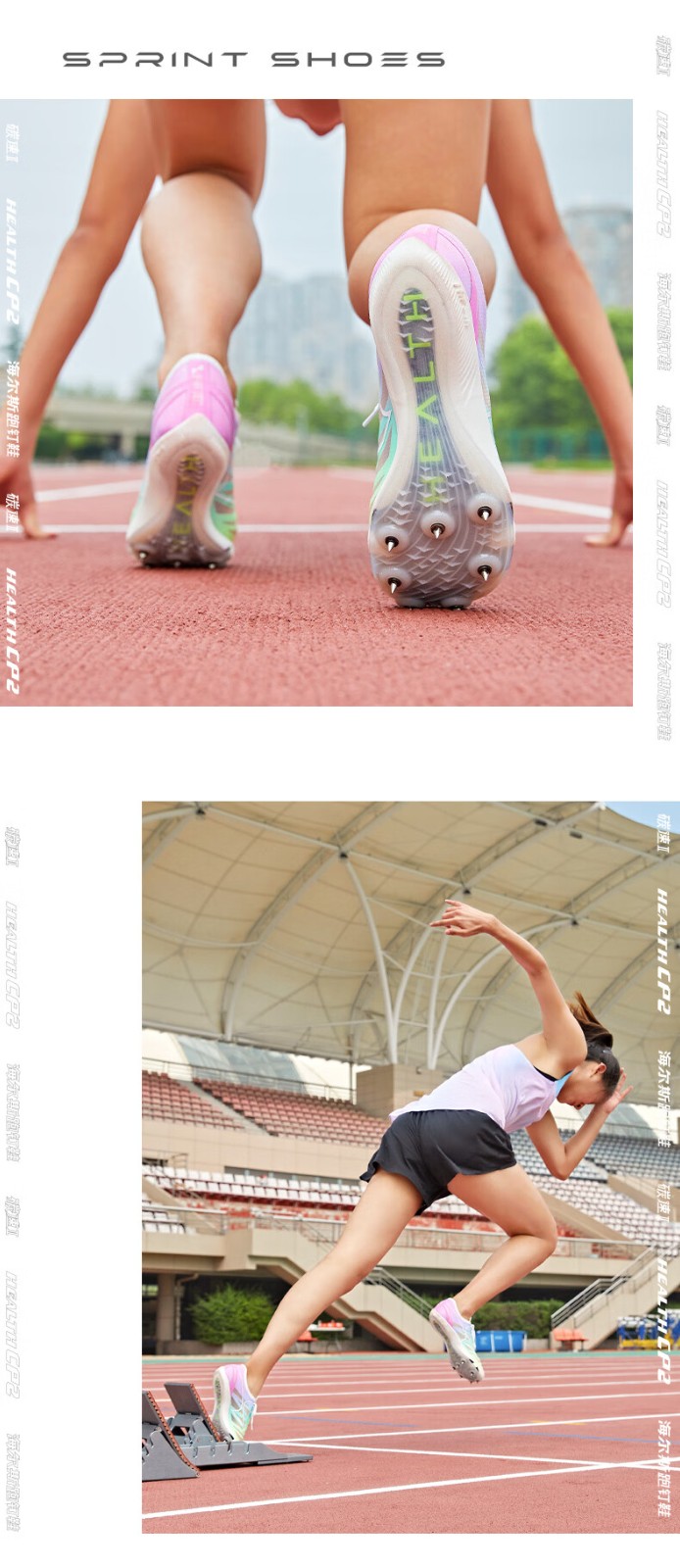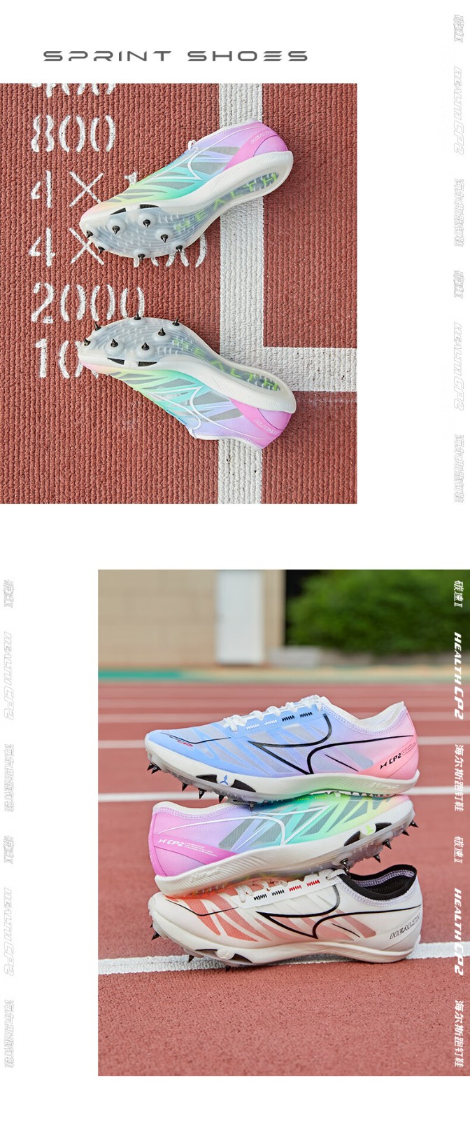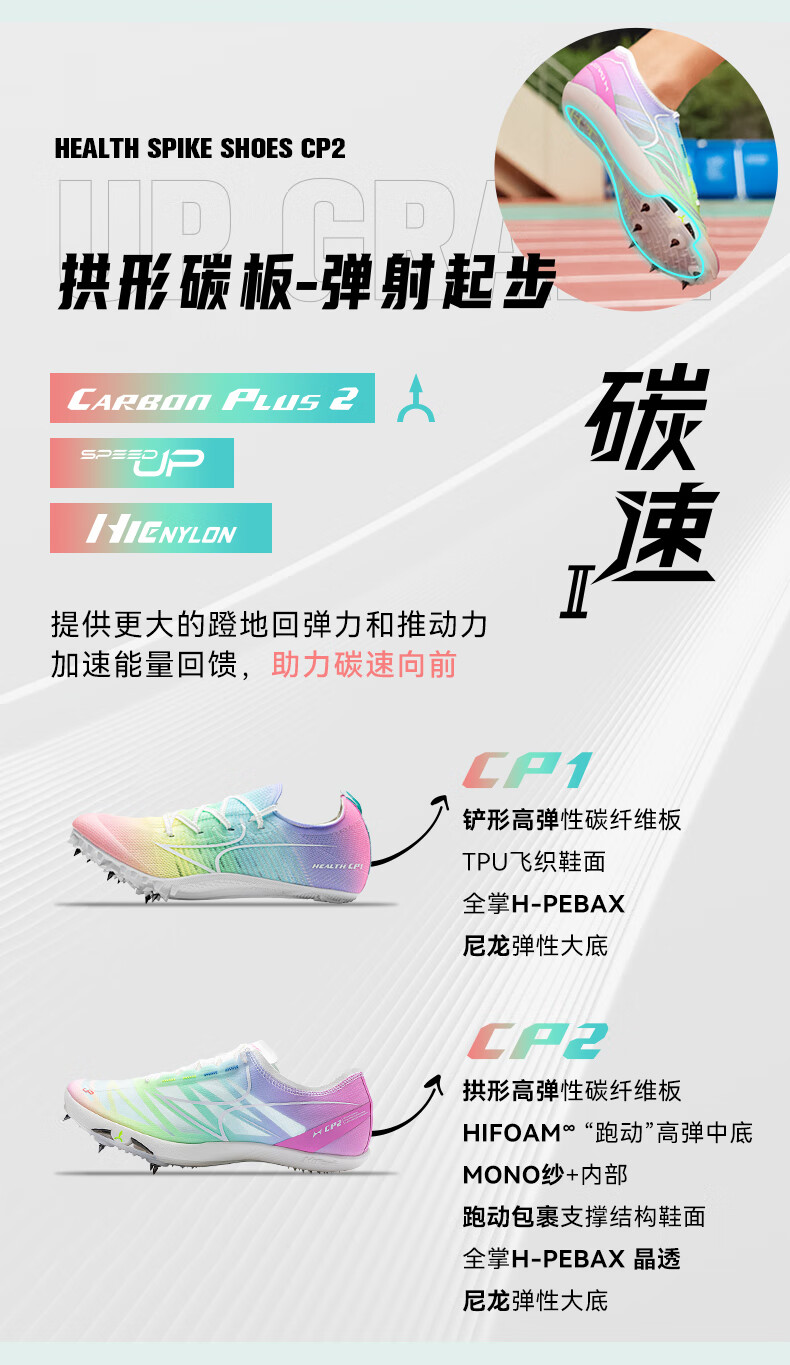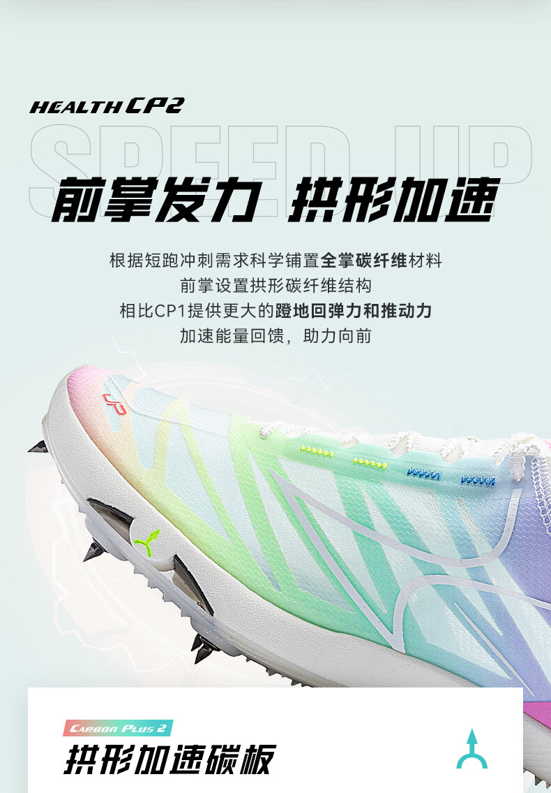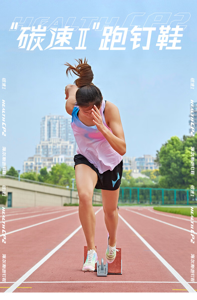 HEALTH 海尔斯 跑钉鞋 中短跑鞋 碳素跑钉鞋 男女学生碳板田径比赛跑钉鞋 专业短跑冲刺钉子鞋 CP2 蓝紫色