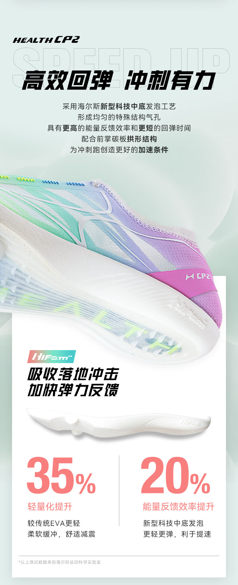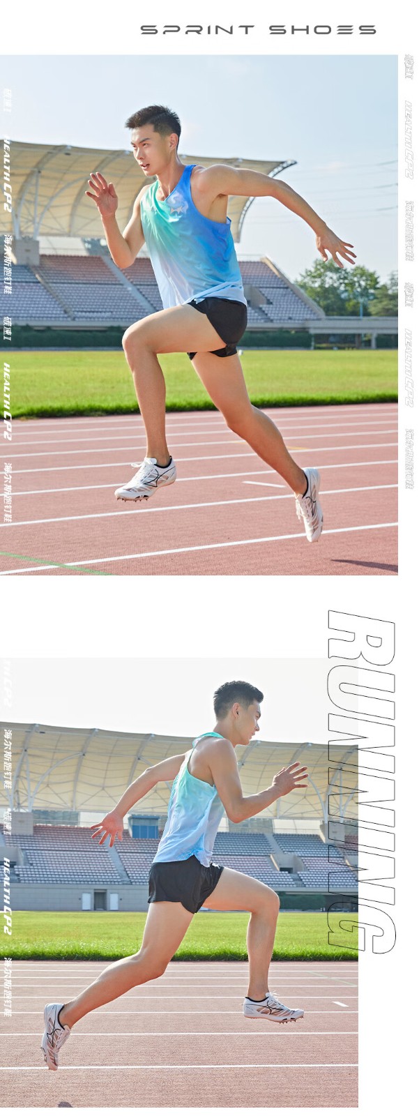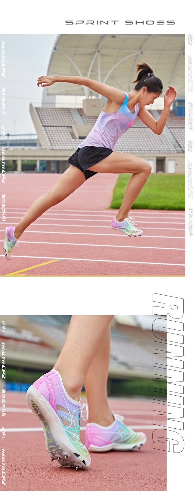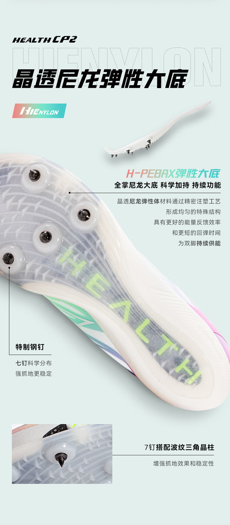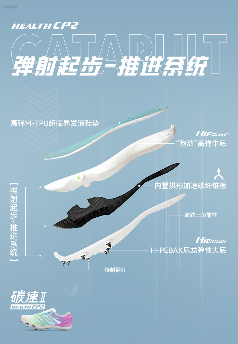 HEALTH 海尔斯 跑钉鞋 中短跑鞋 碳素跑钉鞋 男女学生碳板田径比赛跑钉鞋 专业短跑冲刺钉子鞋 CP2 蓝紫色