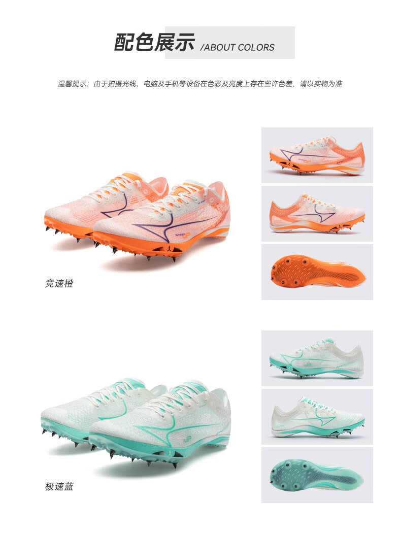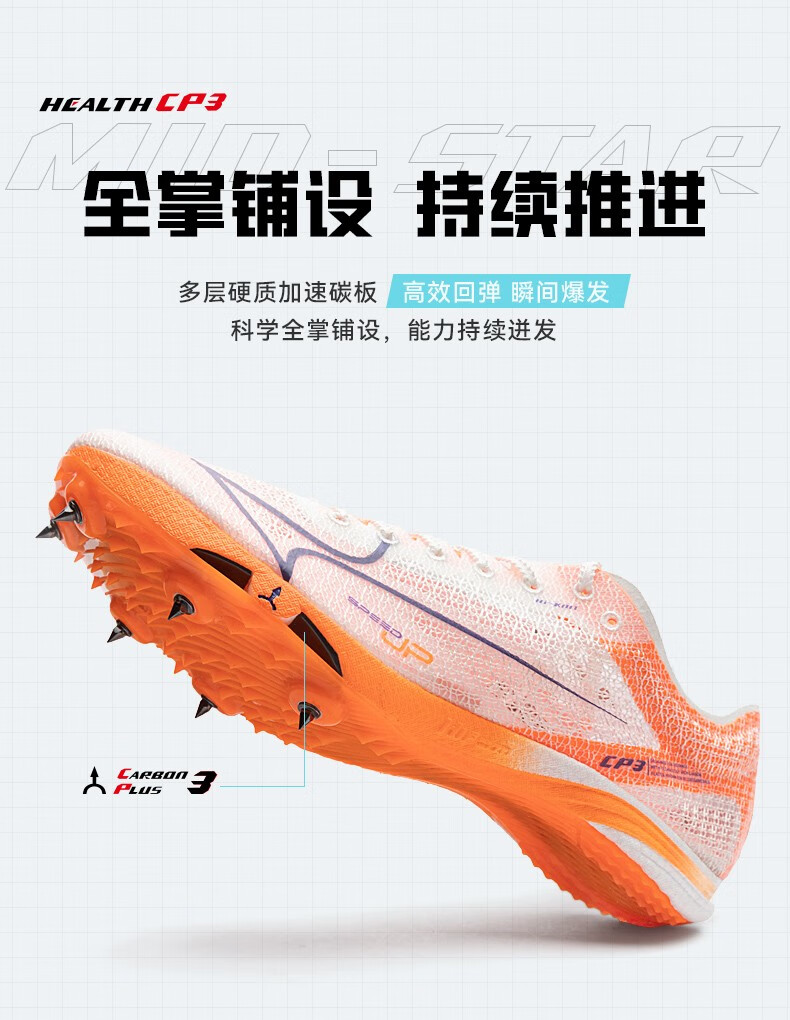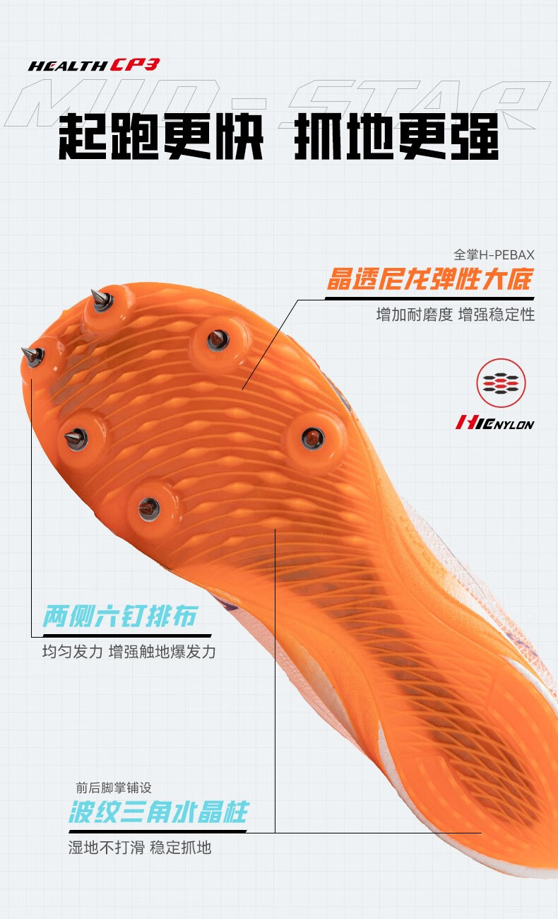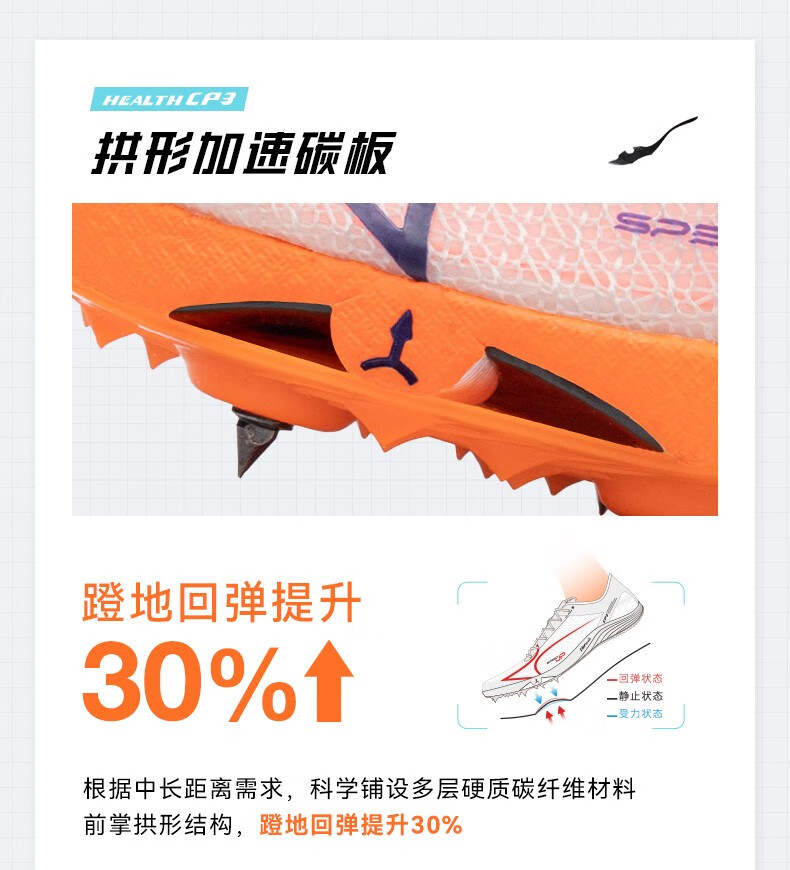 HEALTH 海尔斯 跑钉鞋 碳速钉鞋 中长跑鞋 男女学生田径比赛体考跑钉鞋 专业碳板钉子鞋 CP3 水青色
