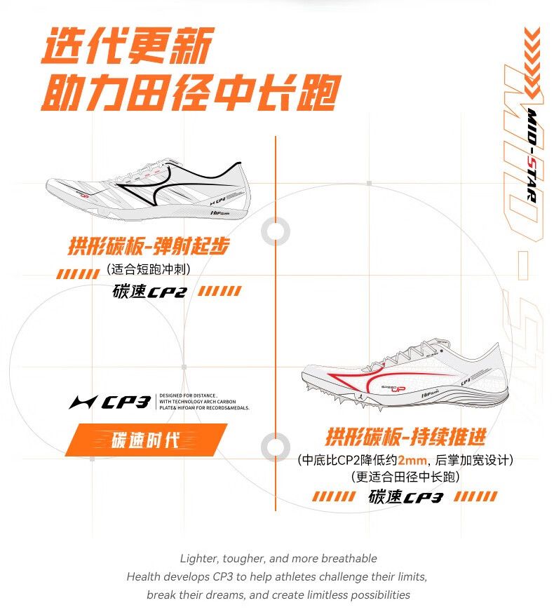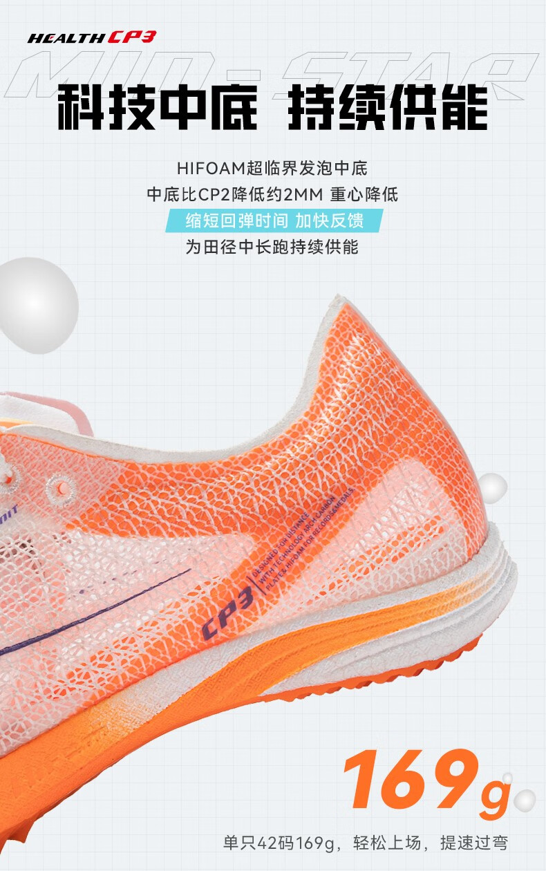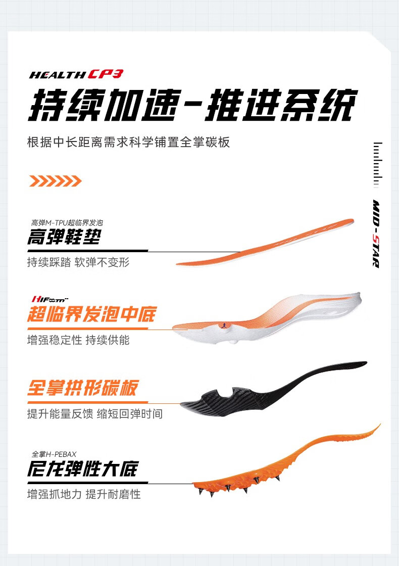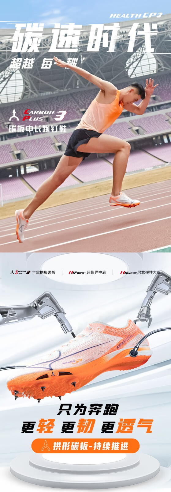 HEALTH 海尔斯 跑钉鞋 碳速钉鞋 中长跑鞋 男女学生田径比赛体考跑钉鞋 专业碳板钉子鞋 CP3 水青色