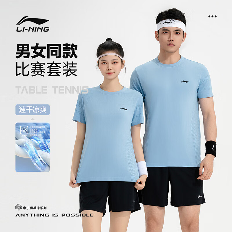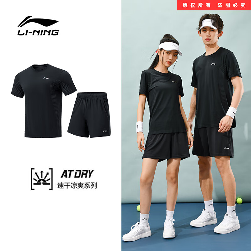 李宁 乒乓比赛套装 训练比赛服 男女同款 上衣短裤套装 AATV019-1 黑色