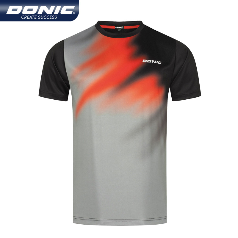 DONICDONIC多尼克 运动服短袖男女款 张继科同款 圆领休闲比赛训练83252-280灰色/红色
