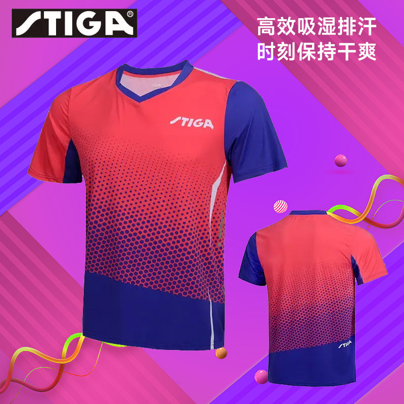 STIGA斯帝卡 冰感提花运动短袖 乒乓球服 男女款短袖 运动T恤 比赛训练服 CA-0221 电光蓝