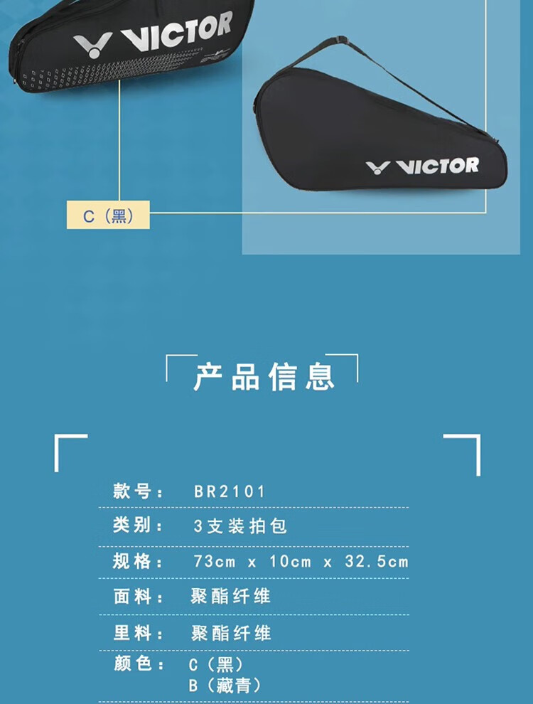 威克多(VICTOR) 胜利BR2101 羽毛球拍套 便携3支装 手提单肩背拍包保护套 BR2101 C 黑色