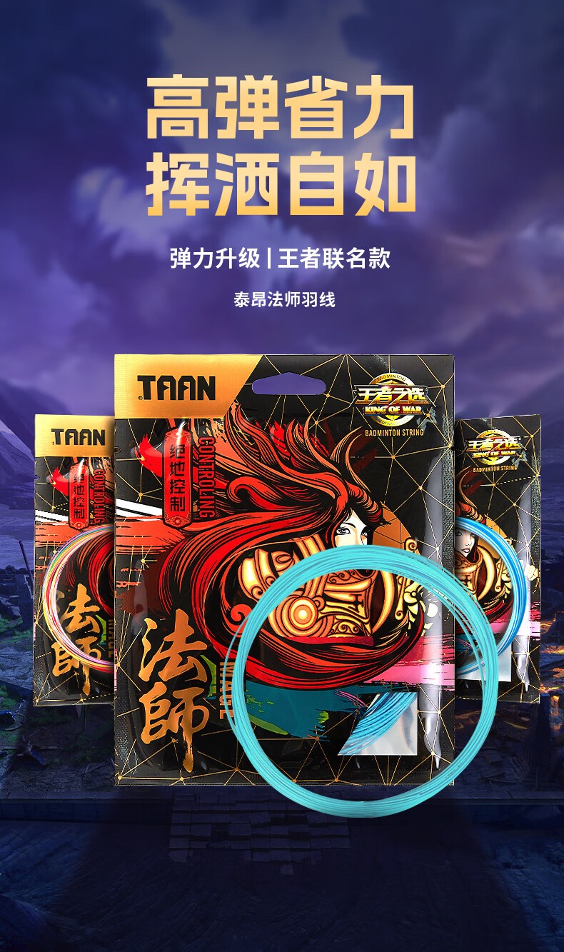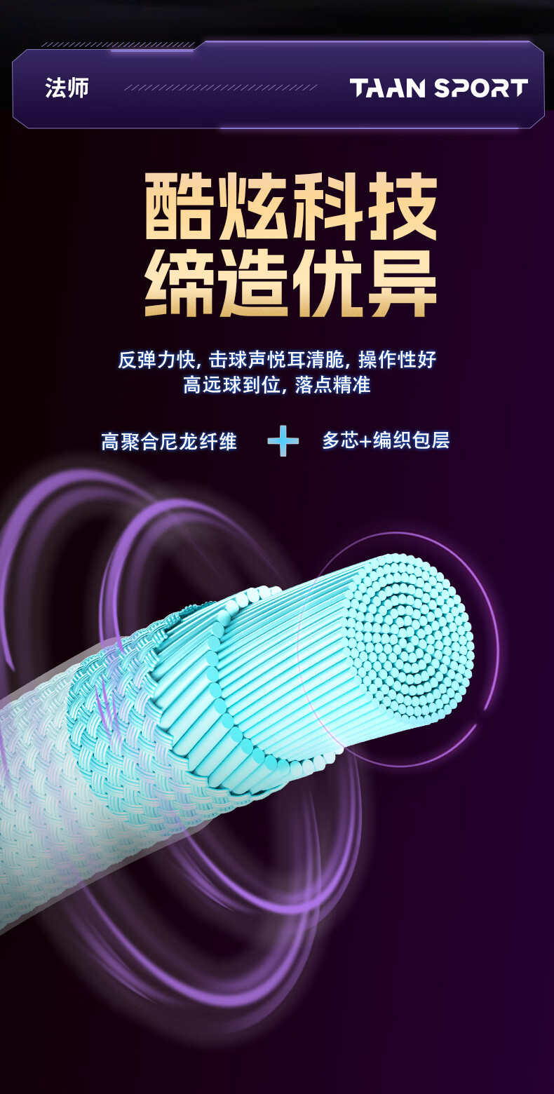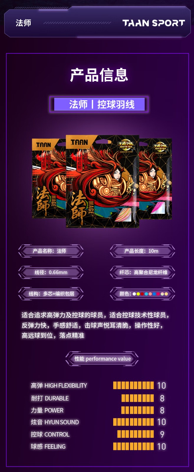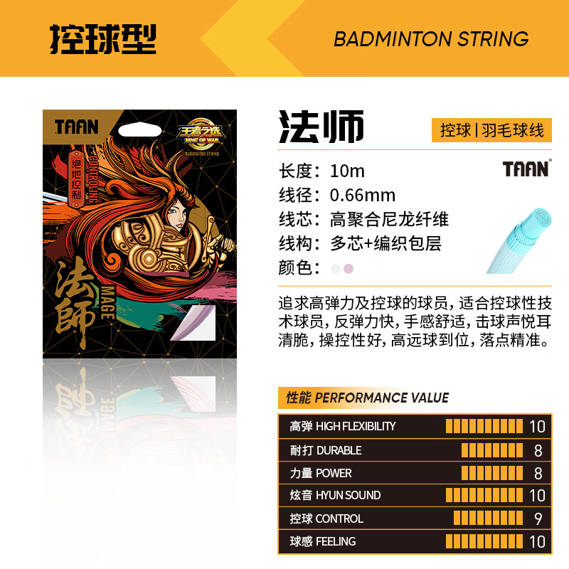 TAAN 泰昂 羽毛球线 法师 耐打高弹炫音 控球专业羽线 多芯编织包层 王者之选战线 0.66线径 单条装 适合控球性技术球员,反弹力快,手感舒适,击球声悦耳清脆