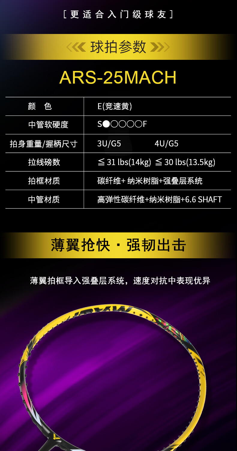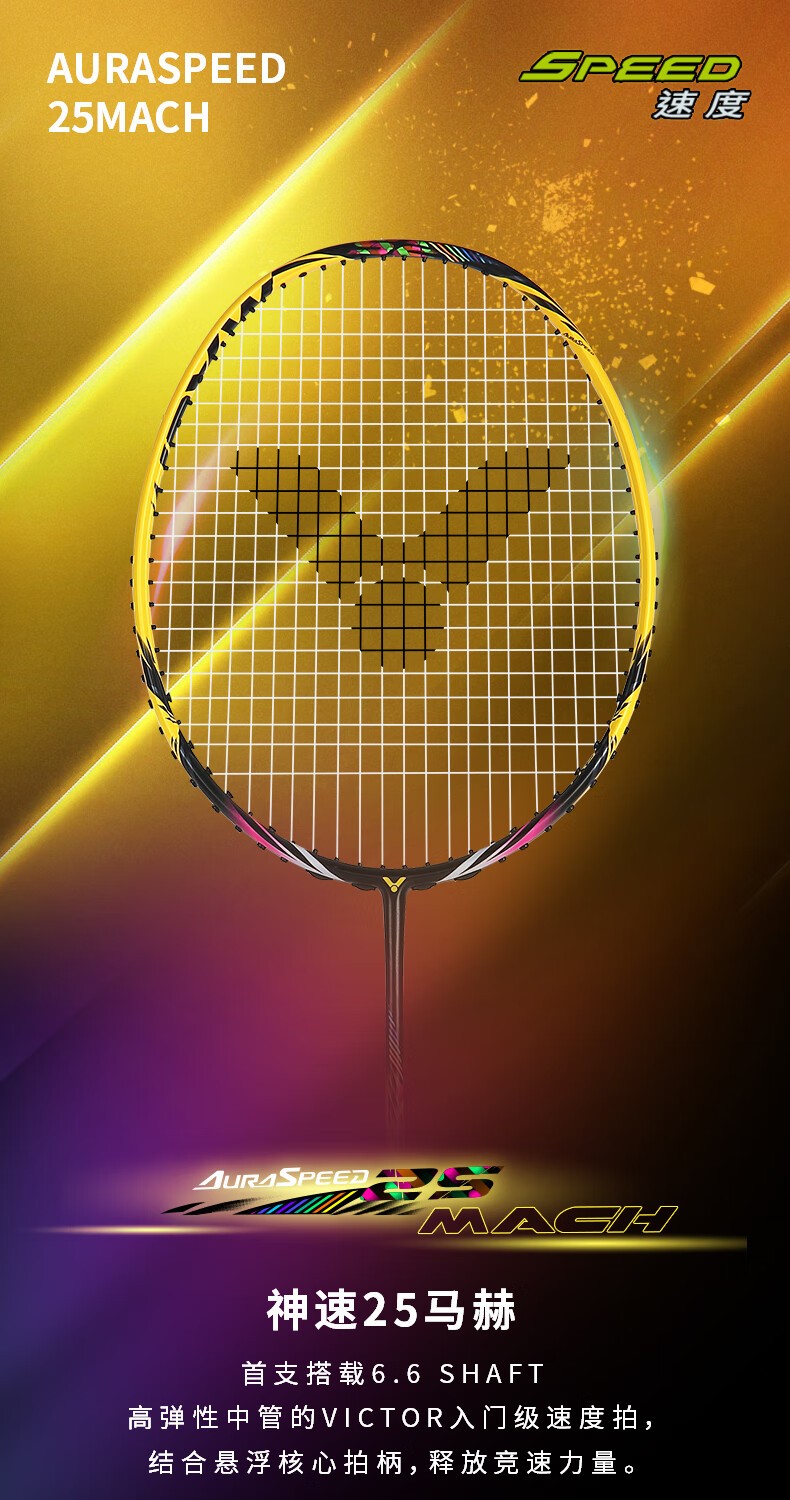 VICTOR 威克多 羽毛球拍 神速25马赫 胜利入门级单拍 ARS-25MACH E 竞速黄 无需凑单,下单立减15%!!!