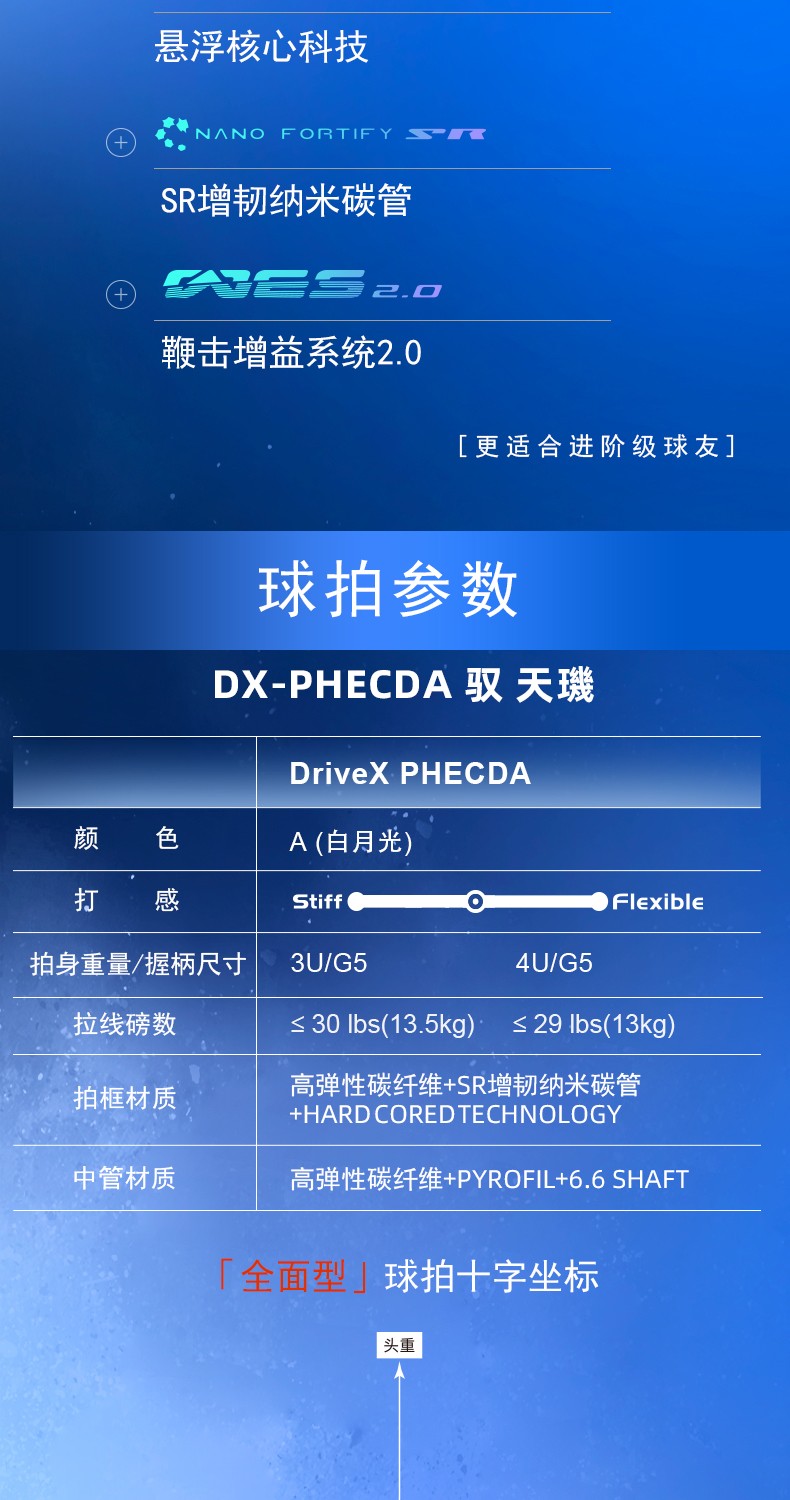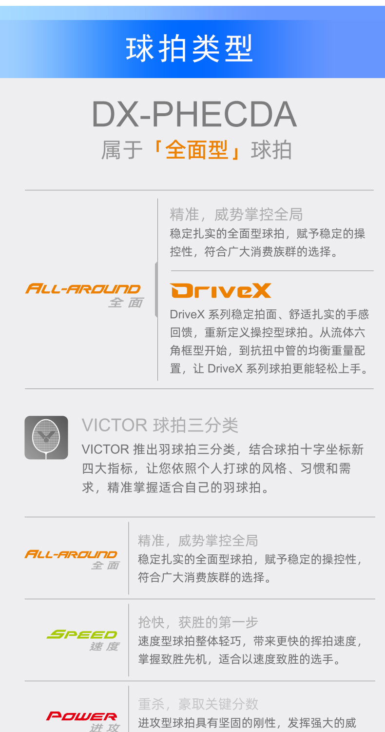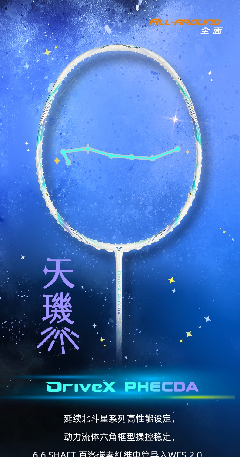 VICTOR 威克多 羽毛球拍 天玑 碳纤维进阶级单拍 DX-PHECDA A 月光白 全面型球拍 更适合控制线路的技术型选手使用