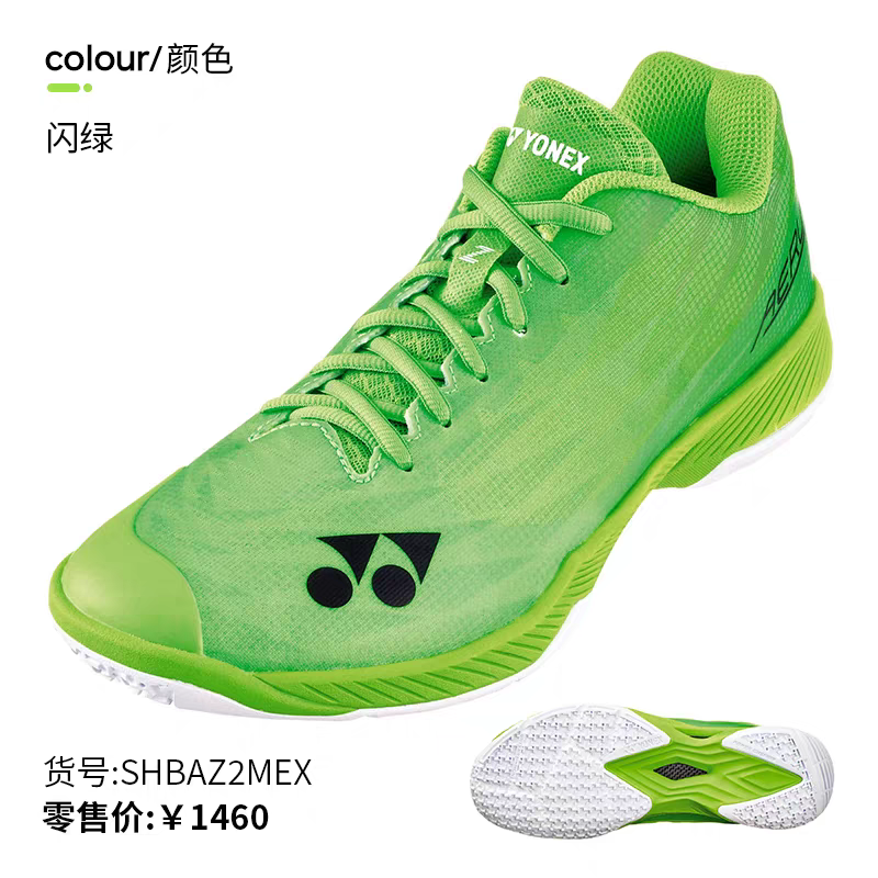 尤尼克斯YONEX 羽毛球鞋 轻量型专业比赛运动鞋 SHBAZ2MEX 男款超轻5代防滑耐磨稳定减震 闪绿色 【到手价859元】超轻羽鞋,超轻减震动力垫,防滑耐磨