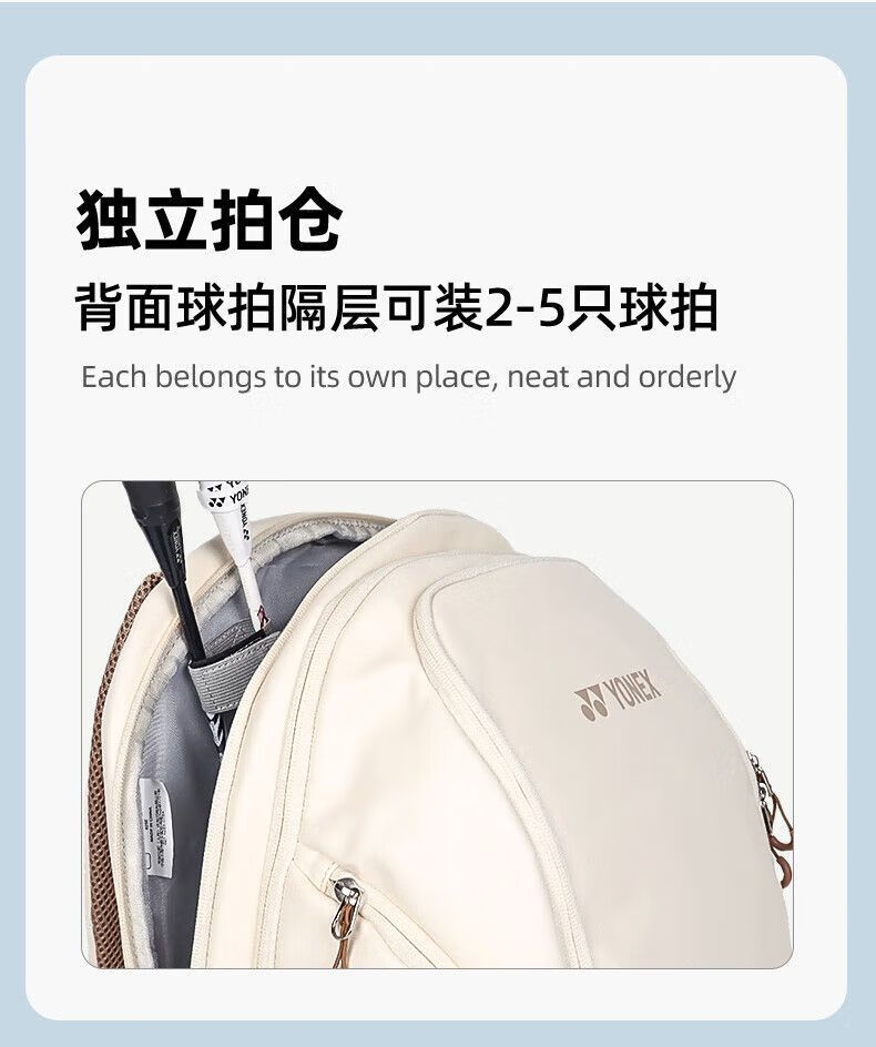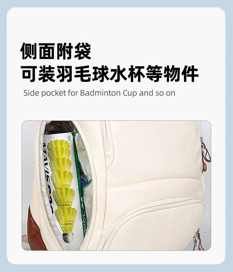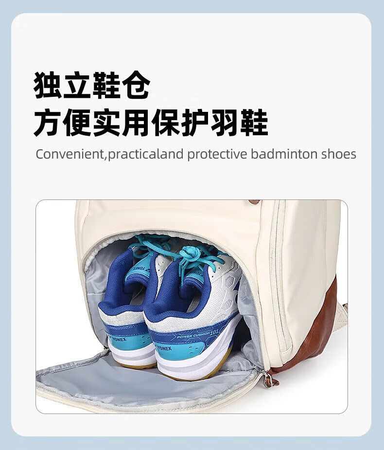 做工扎实,球拍仓护漆,鞋仓隔脏,干净又省心,通勤打球一体。