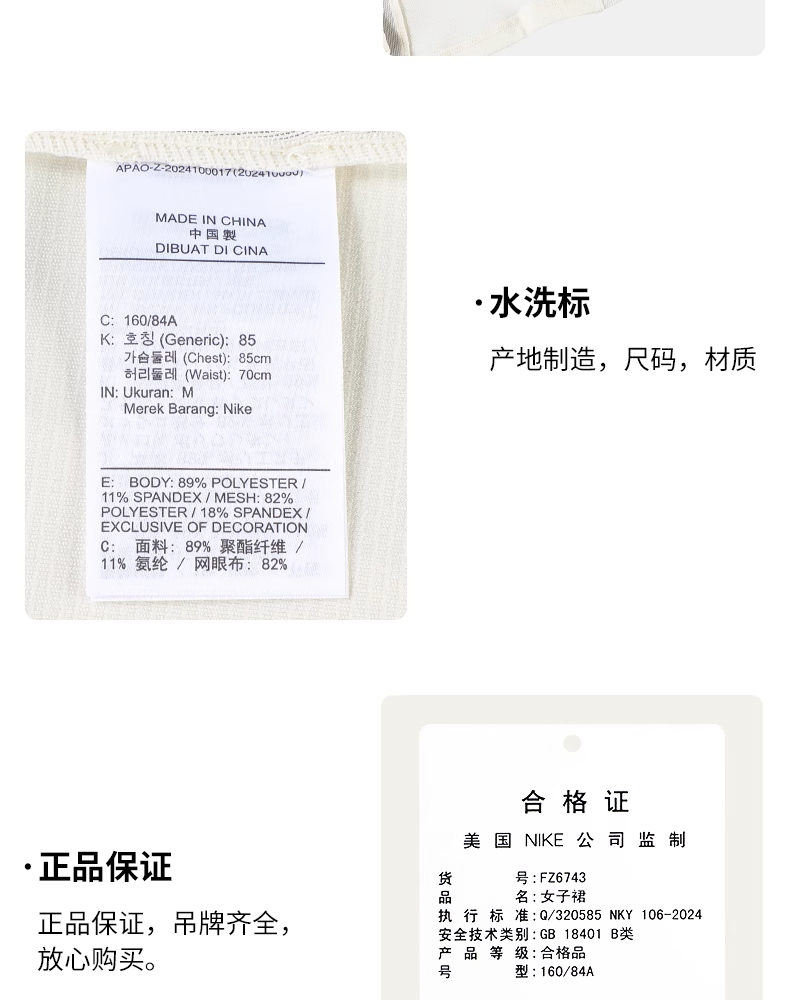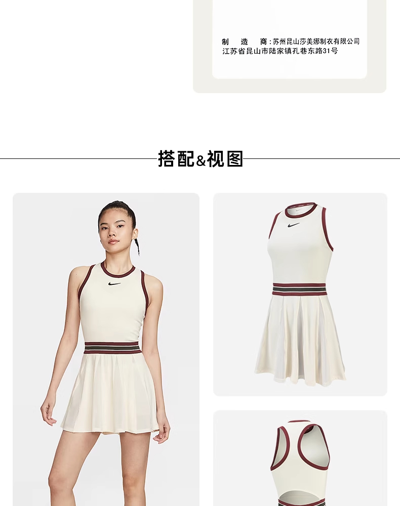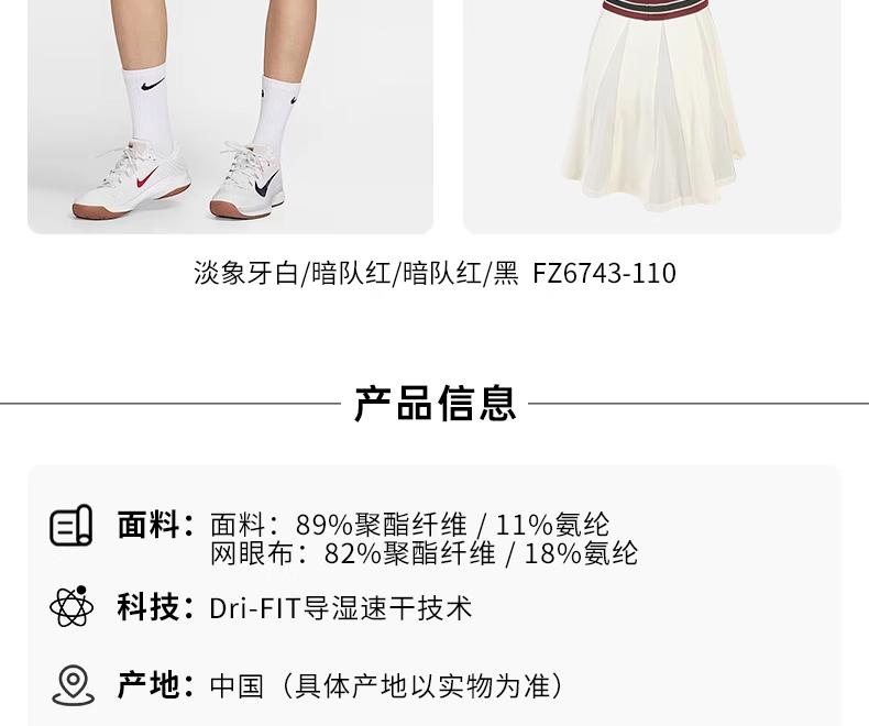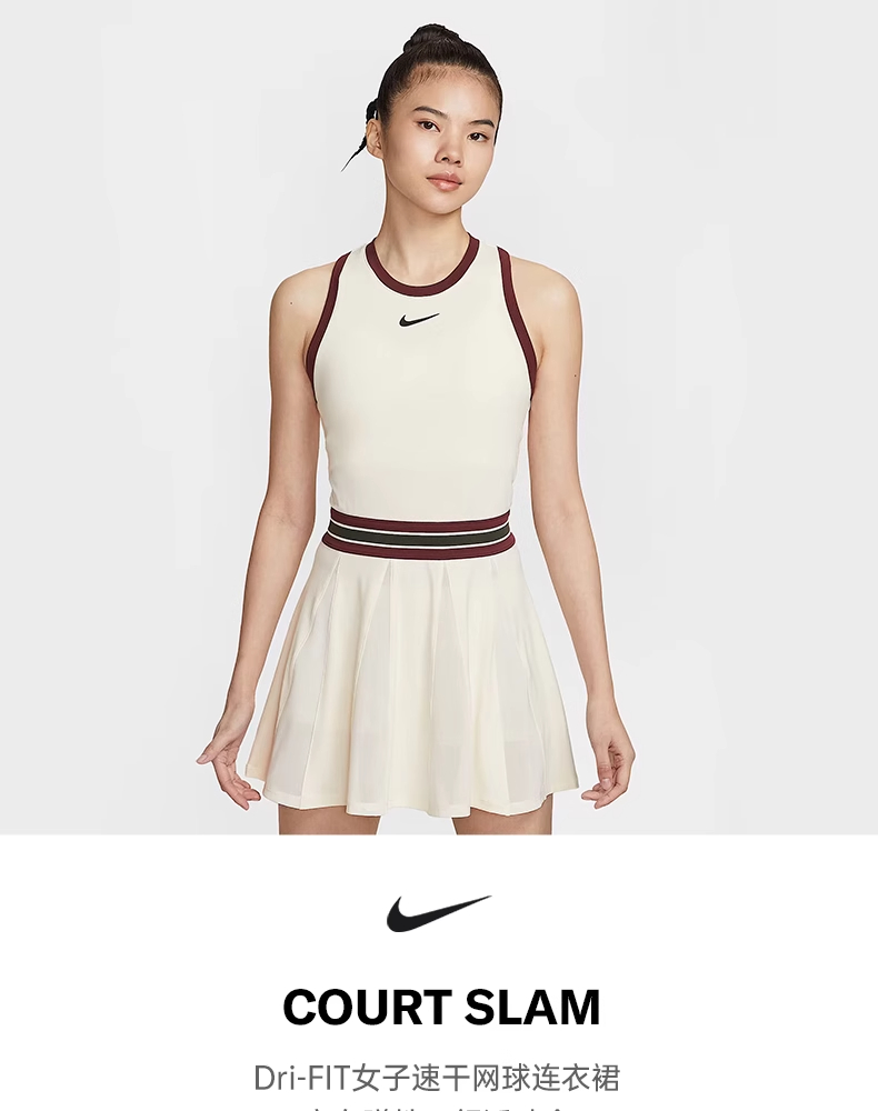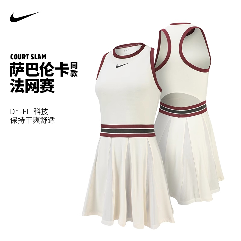 Nike耐克网球连衣裙 25年法网萨巴伦卡同款圆领背心无袖网球连衣裙 FZ6743-110 浅象牙色