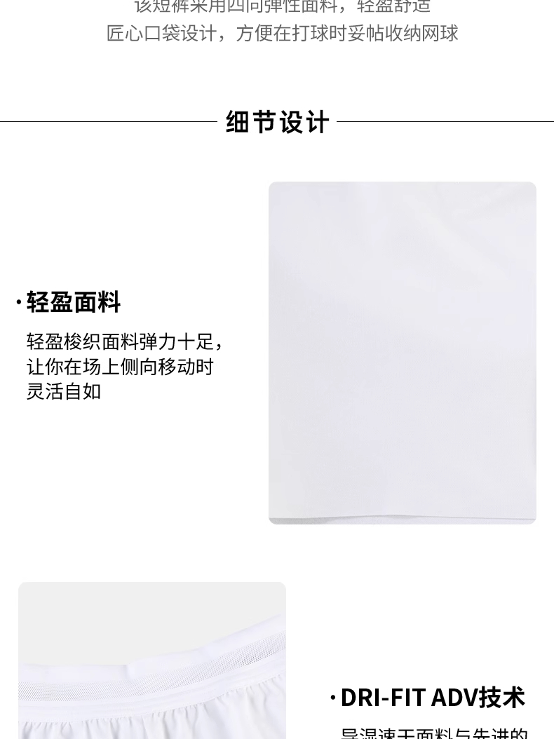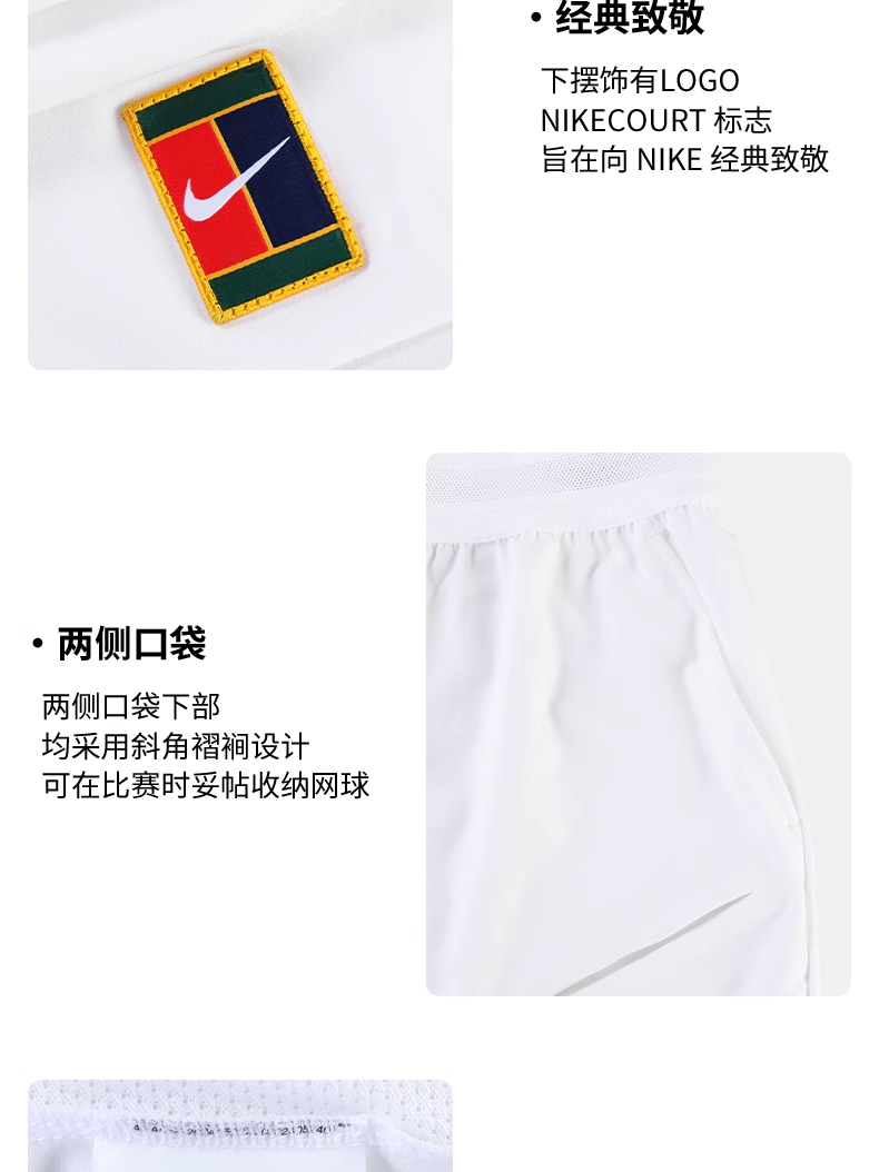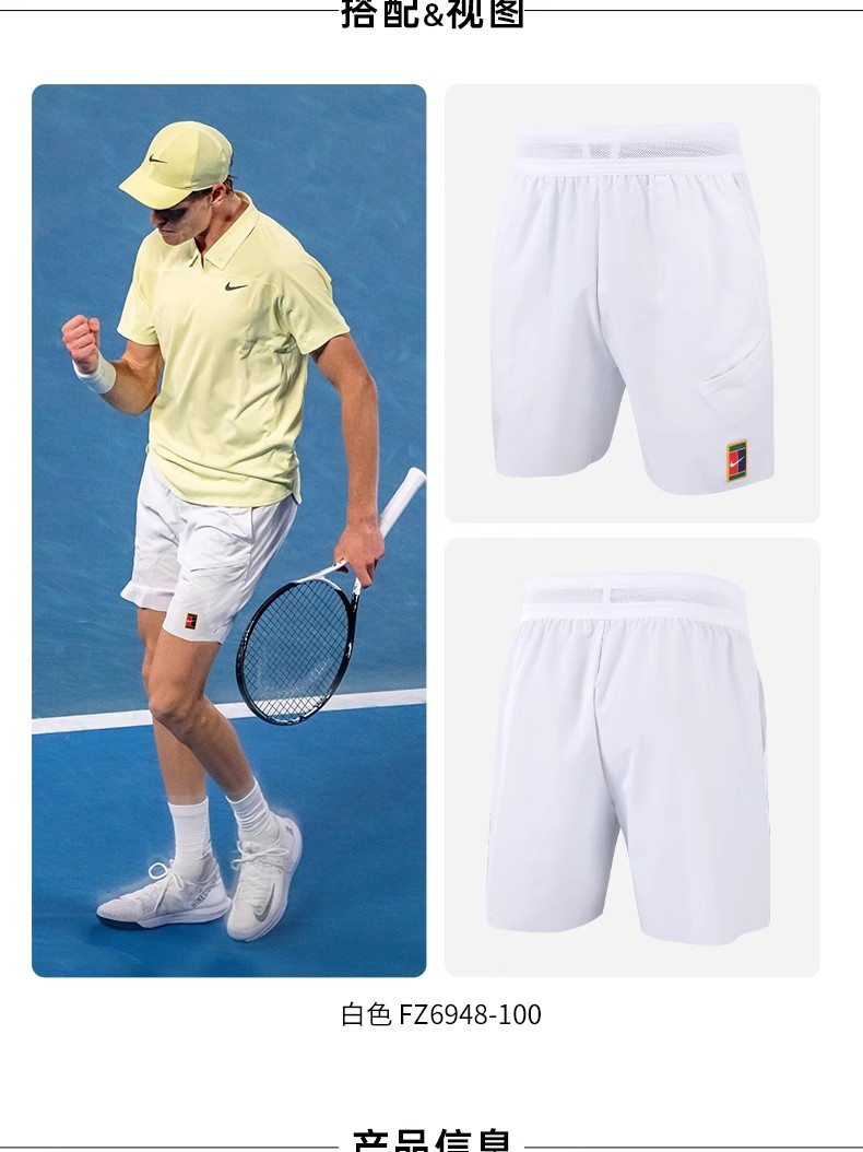 nike耐克网球服 辛纳温网同款短裤25新款速干运动网球服 FZ6948-100 白色