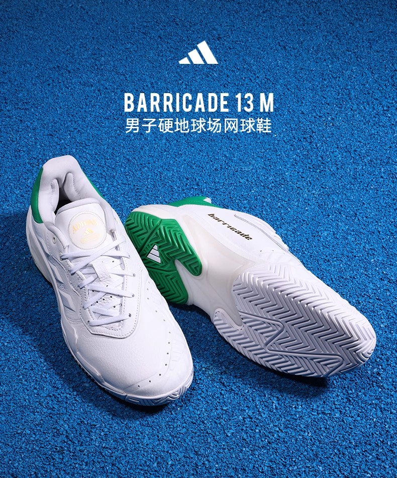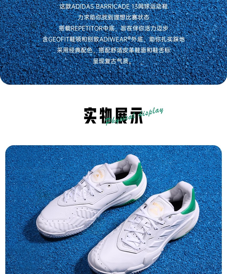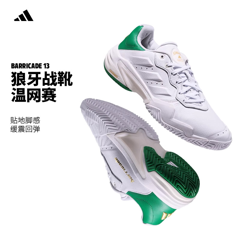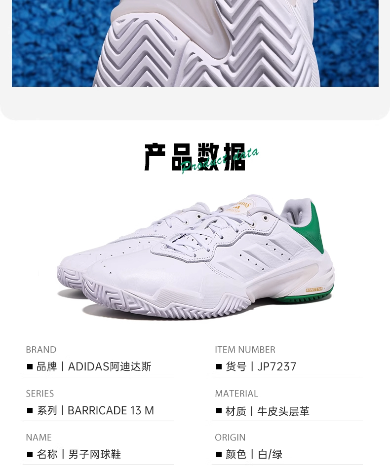 Adidas阿迪达斯网球鞋 男子网球鞋Barricade 13 M 舒适网球鞋专业运动鞋 JP7237 白/绿