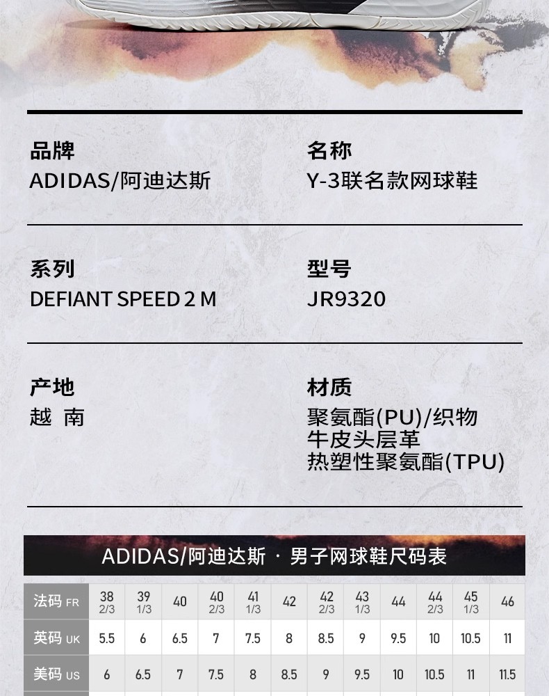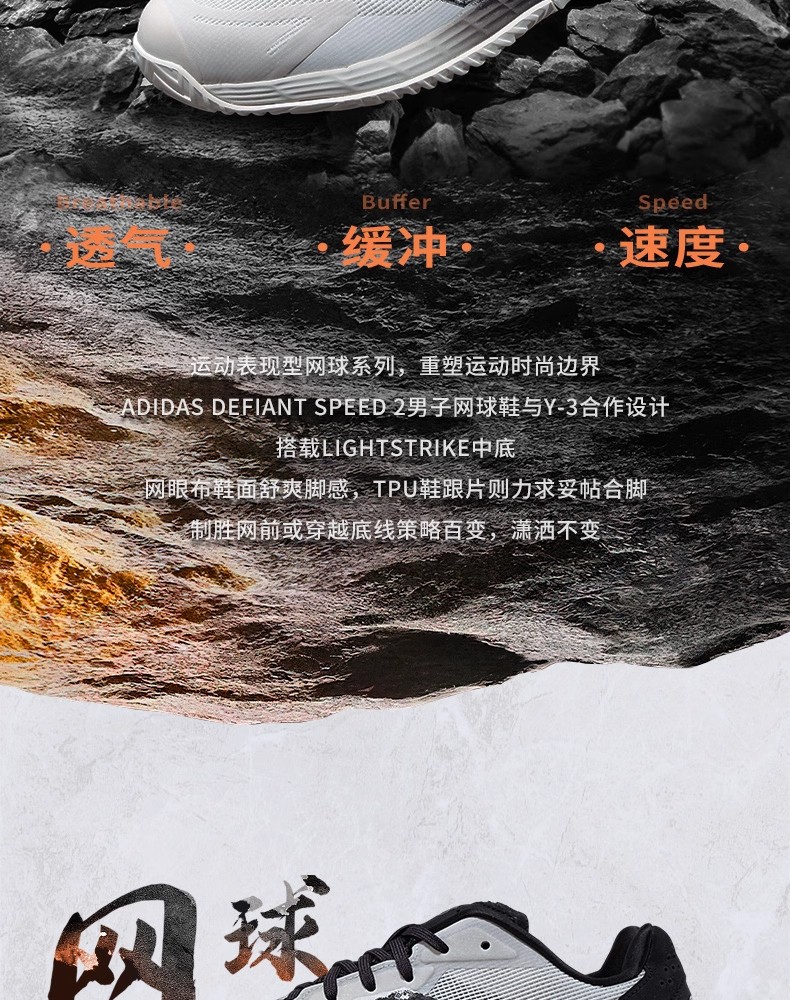 Adidas阿迪达斯网球鞋 Y-3山本耀司联名网球鞋兹维列夫25美网款Defiant Speed 2【男款】 JR9320 白/黑