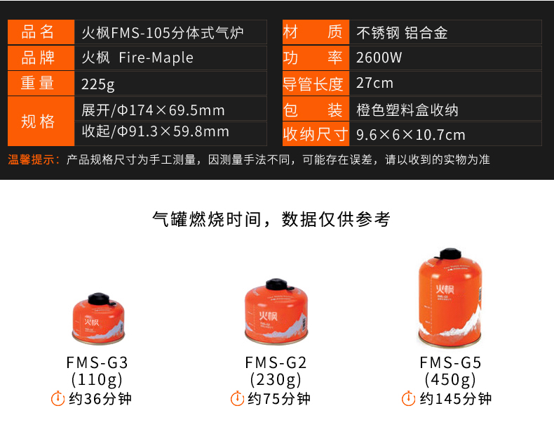 火枫105户外炉头 便携野营炉具节能分体式气炉带电打火野外炉头76957 105分体式野营炉头,轻便小巧,稳定性强,折叠收纳,电子打火,省气耐用!