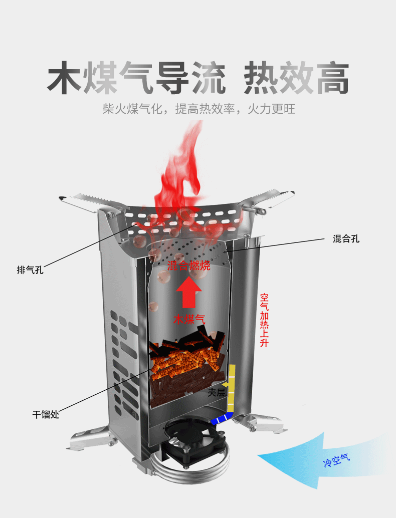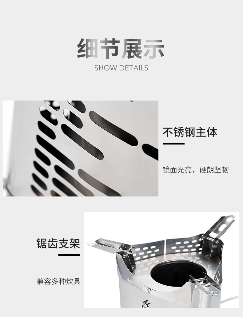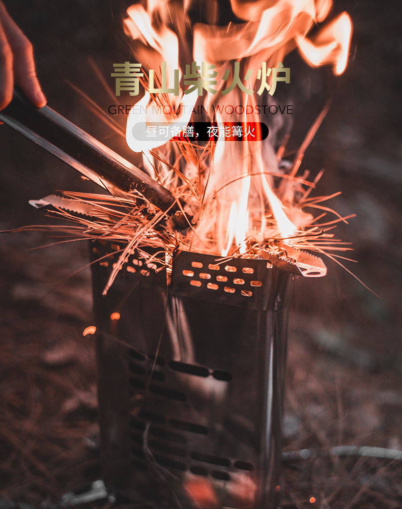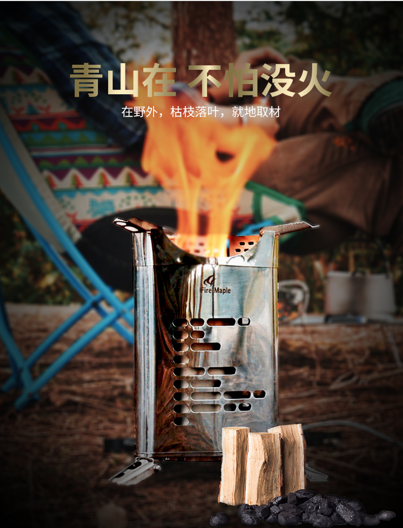 火枫青山柴火炉 户外柴火炉 木煤气炉 野炊炉具野外便携炉头灶77038 青山柴火炉,不锈钢主体,燃料可就地取材,可兼容各种厨具,无极调速控制火力,精巧设计,便于携带,昼可备膳,夜能篝火!