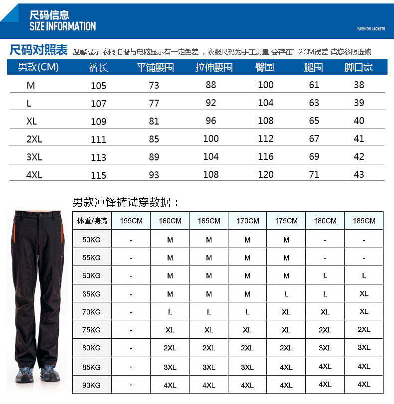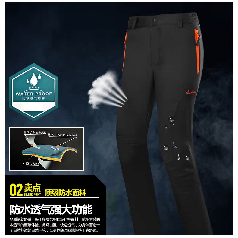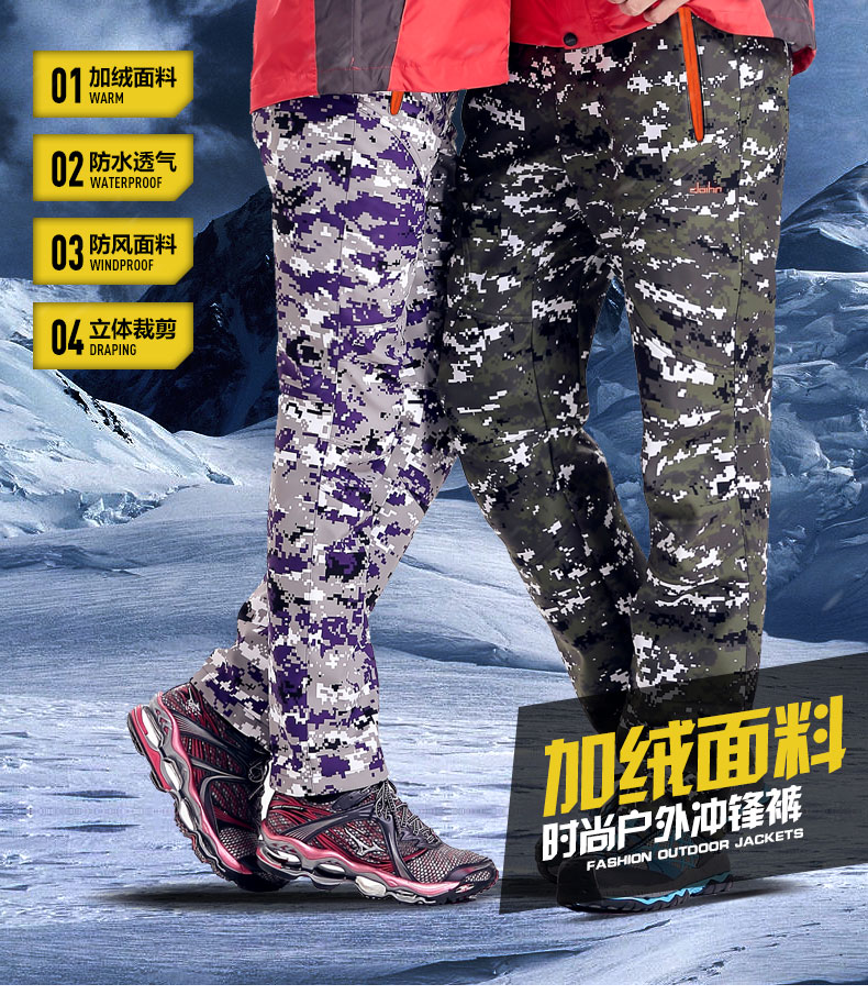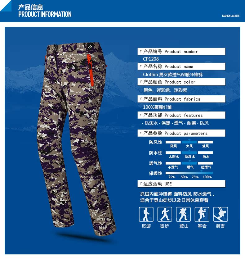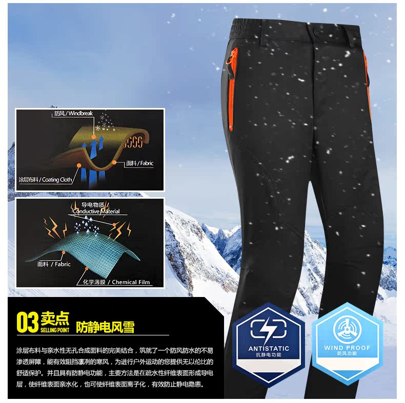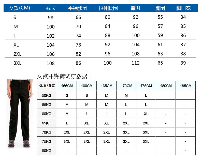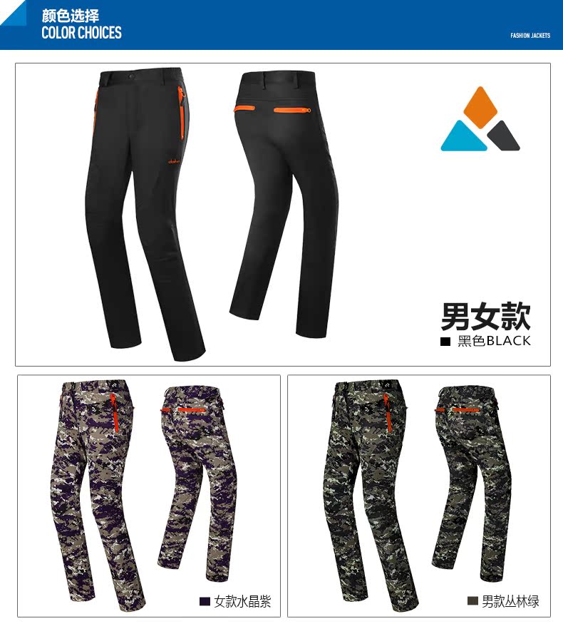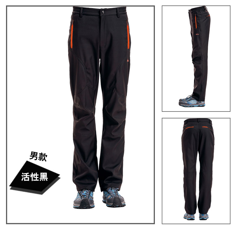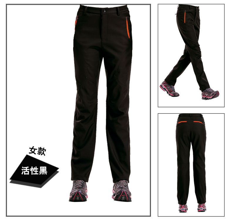 Clothin卡鲁森 男女款抓绒冲锋裤!采用优质软壳面料,加绒内里,防风保暖,舒适透气,防泼水,微弹无束缚!女款活性黑 61797