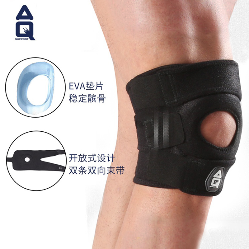 AQ护具 W53501可调式髌骨稳定护膝 护膝运动男膝盖篮球羽毛球髌骨关节损伤跳绳跑步女专业半月板套 黑色无支撑条 EVA垫片 双重固定