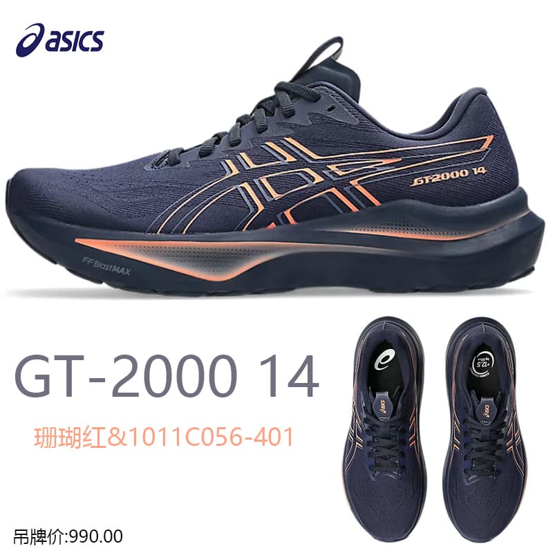ASICS亚瑟士 男 跑步鞋 GT-2000 14男子稳定支撑跑步鞋 耐磨透气运动鞋 1011C056-401 蓝色/红色12.12返场特惠超级秒杀,原价689元,现仅需665元!