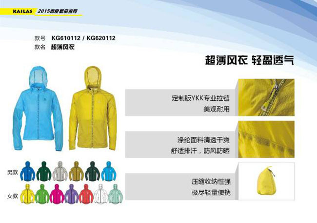 KAILAS品牌2015春夏新品的专业设计,带来卓越的功能性,轻盈的体验穿着,是您户外出行中不可或缺的一员。