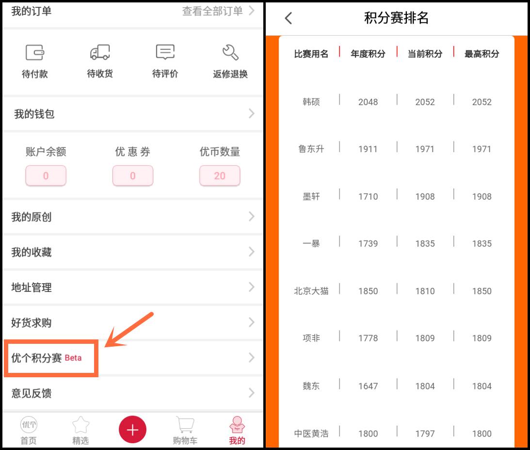 优个积分赛,是优个网线下的系列活动,吸引了众多用户参加。每当有新的积分赛举办,我们都会在显眼位置发布信息,随时可以报名参赛。这次更新,我们在个人中心里增加了“优个积分赛”的积分查询入口,目前是测试版本,还需要不断完善。现在登录进入,看看你自己或者其他老友,都是多少积分了。以后积分就不用自己费心去记啦,在app里随时查得到!