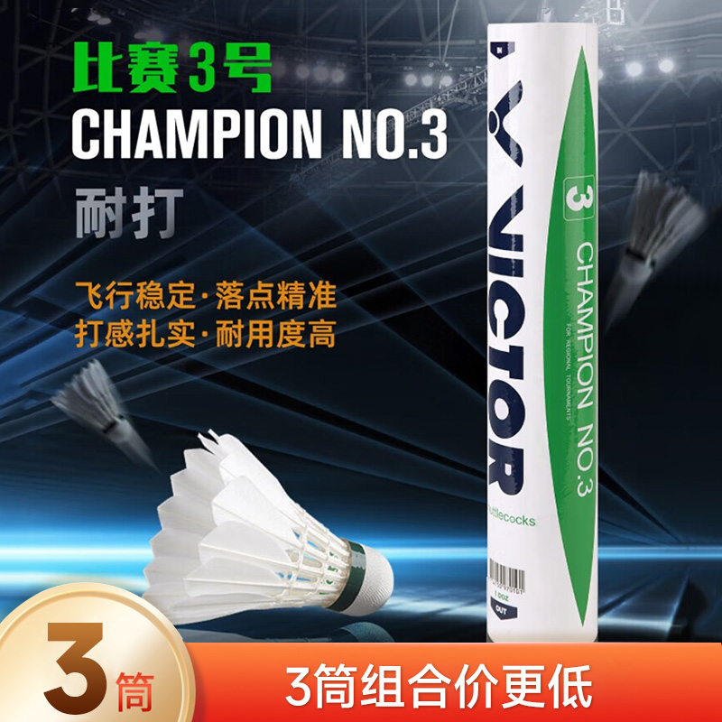 VICTOR胜利羽毛球 威克多比赛3号 3筒装比赛级3号CP3 鸭毛球 12只/筒技术羽毛球的典范