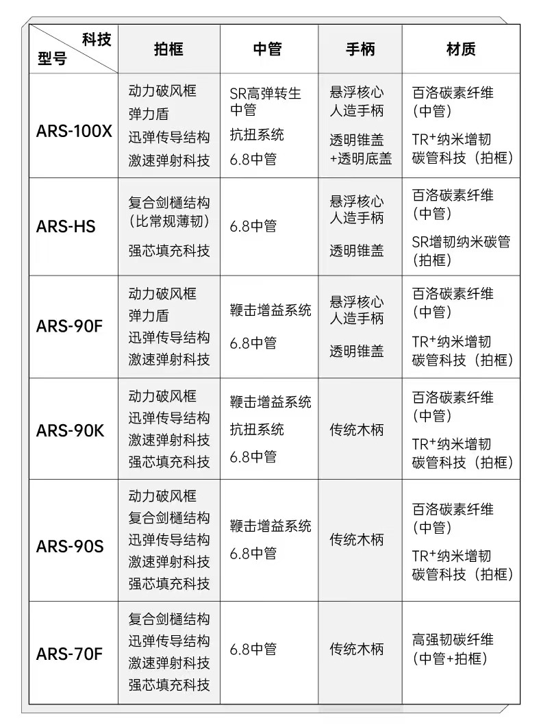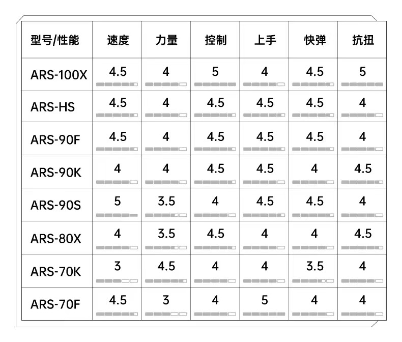世界冠军阿山同款战拍。高硬度中管根基再加固,加速中管恢复力,提供进攻连贯性。同时搭载FREE CORE及POWER RING,手感顺畅、刚柔并济,力量瞬发集中,一出即胜。ARS-100X适合连贯精准突击或主打控制,擅长变换球路的选手。