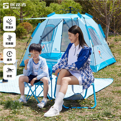探路者哆啦A梦联名 便携遮阳户外野餐露营篝火沙滩公园三人速开帐 蓝色 TEDK80377