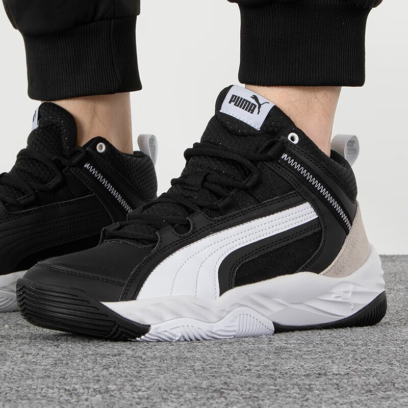 彪马(PUMA)男女秋冬季情侣运动复古耐磨保透气皮面休闲鞋中高帮板鞋 385551-03/黑白灰-经典配色