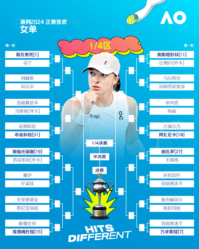 女单正赛名单中,斯维亚泰克、萨巴伦卡、高芙和佩古拉领衔。大坂直美、科贝尔、布雷迪等人凭借保护排名参赛。