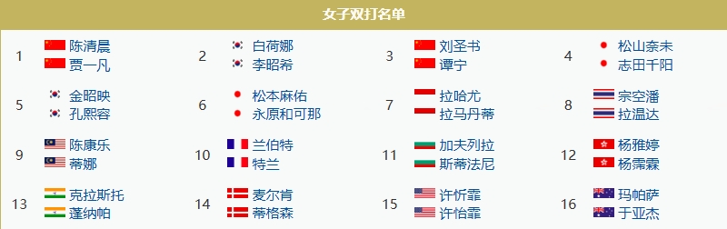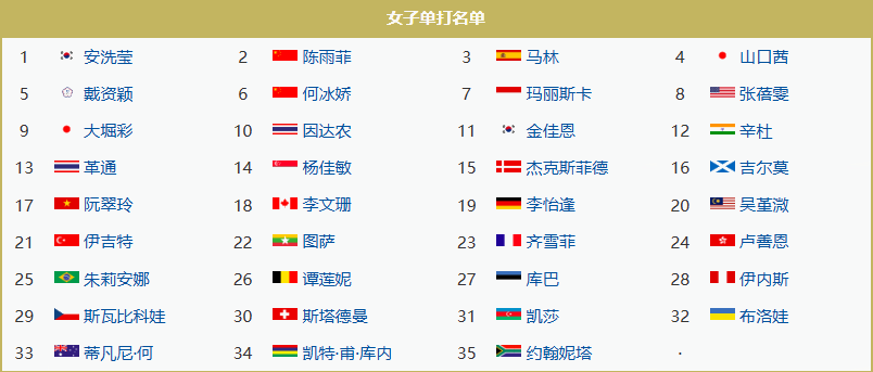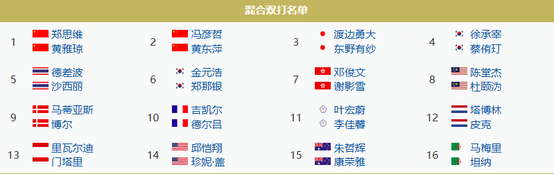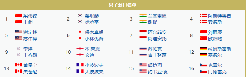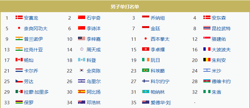 2024年巴黎奥运会羽毛球赛-全资格名单