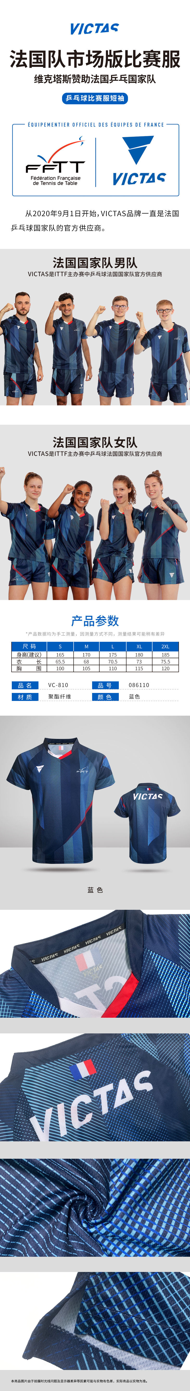 Victas维克塔斯 乒乓球服 法国国家队市场版比赛服 乒乓运动T恤短袖 VC-810/086110 蓝色