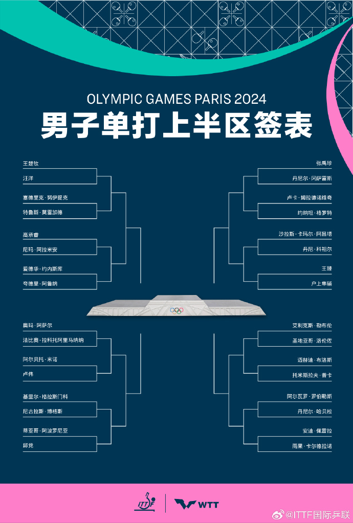 王楚钦🇨🇳𝗩𝗦汪洋🇸🇰、塞德里克·努伊提克🇧🇪VS特鲁斯·莫雷加德🇸🇪、高承睿(中国台北)VS尼玛·阿拉米安🇮🇷、爱德华·约内斯库🇷🇴VS夸德里·阿鲁纳🇳🇬