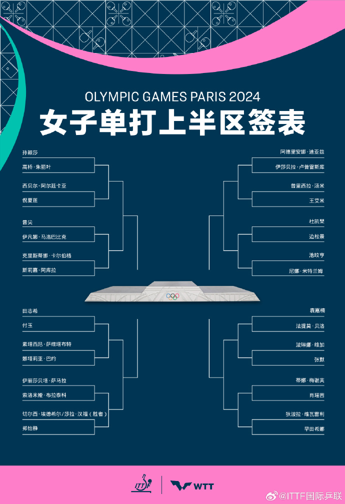 孙颖莎🇨🇳𝗩𝗦高桥·朱丽叶🇧🇷、西贝尔·阿尔廷卡亚🇹🇷VS倪夏莲🇱🇺、曾尖🇸🇬VS伊凡娜·马洛巴比克🇭🇷、克里斯蒂娜·卡尔伯格🇸🇪VS斯莉嘉·阿库拉🇮🇳