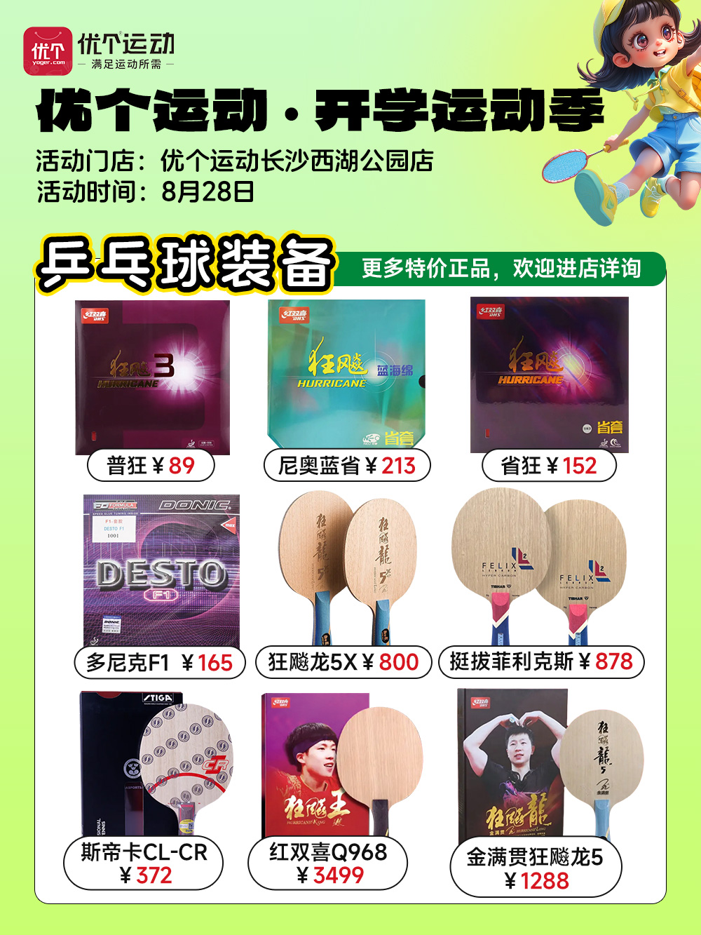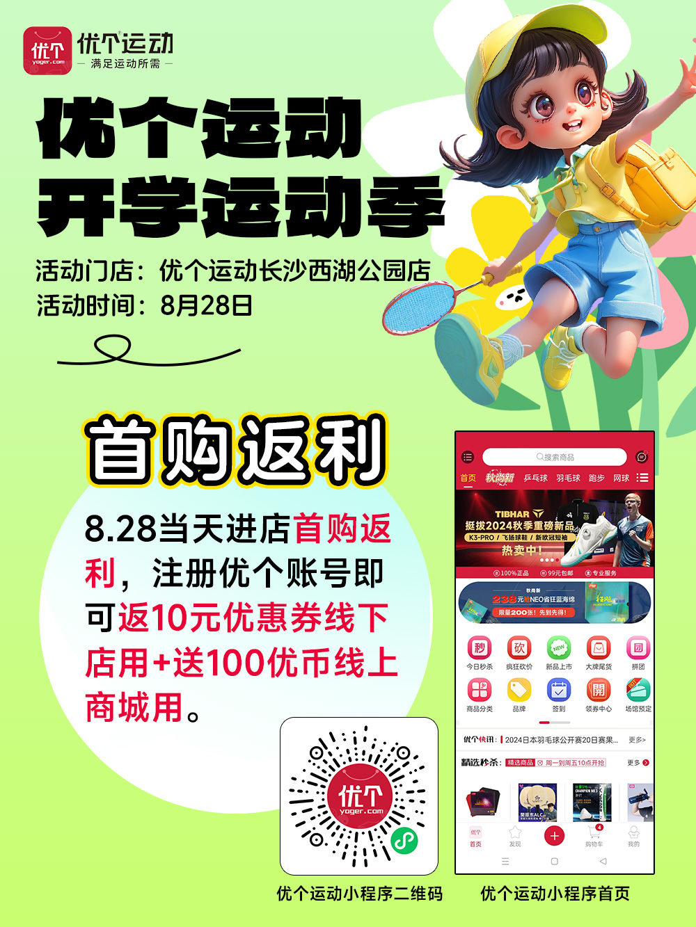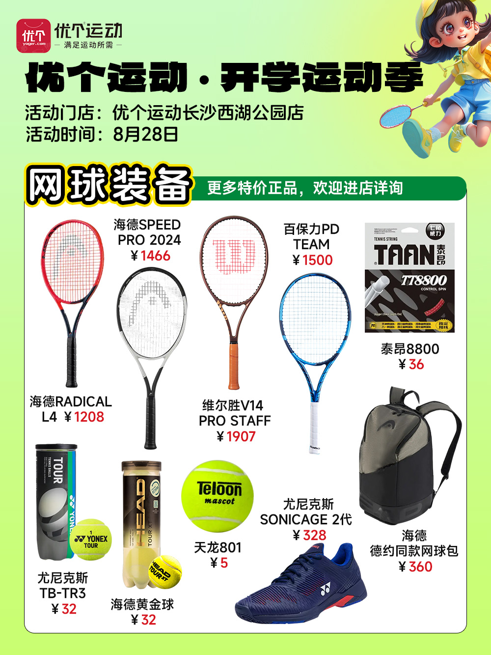 优个运动长沙西湖公园店8月28日进店有礼!特价限量抢爆款装备!