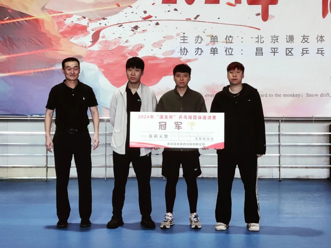 2024年9月21日,优个运动受邀参加2024年“谦友杯”乒乓球友谊赛之团体邀请赛,领队王伯韬带领国家队退役球员纪佳乐、北京省队马明杰、吕北京代表北京优个网参赛,历经激烈角逐,北京优个网从14支队伍中脱颖而出,斩获本次赛事冠军!