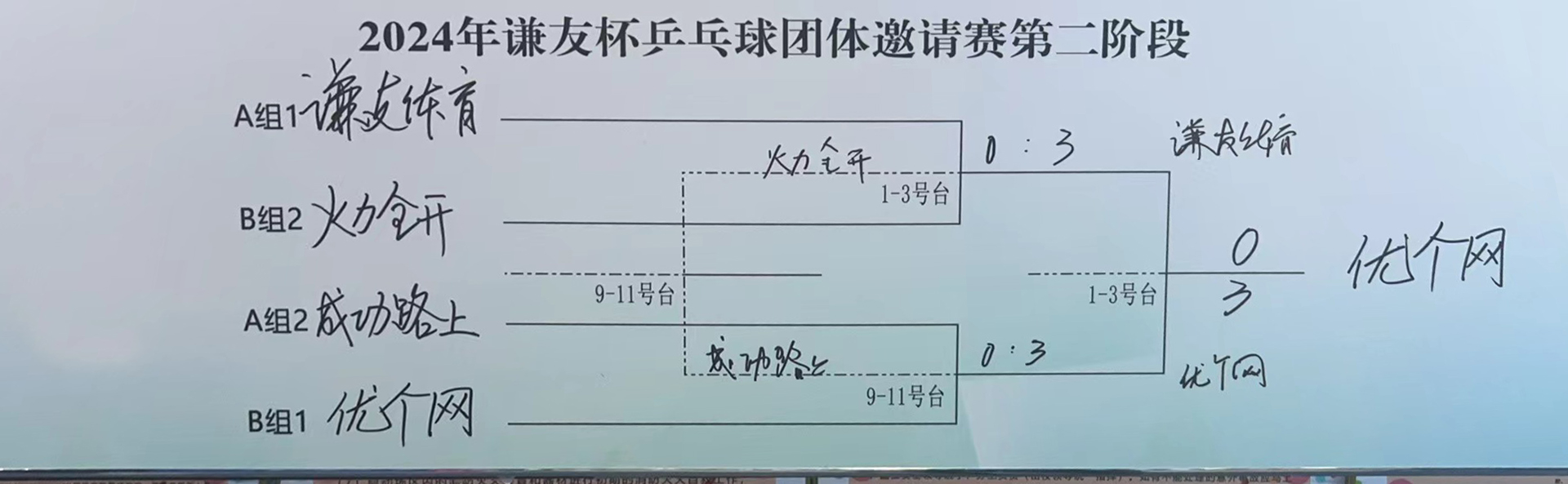 2024年“谦友杯”乒乓球友谊赛之团体邀请赛分为两个阶段。第一阶段,14 支队伍被分成两组进行循环赛。进行42场,共133局比赛。由王伯韬带领的北京优个网的四位队员展现了高超的乒乓球技艺,成功晋级第二阶段。第二阶段淘汰赛中,北京优个网凭借着出色的团队配合和选手们的精湛球技,一路过关斩将,最终以3:0的优异成绩力压对手,荣获2024年“谦友杯”团体邀请赛冠军!