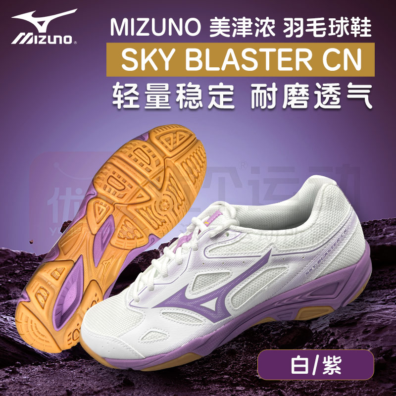 美津浓 男女羽毛球鞋 综合室内外训练运动鞋 轻量缓震耐磨透气 空爆系列 71GA2345 白/黑/紫