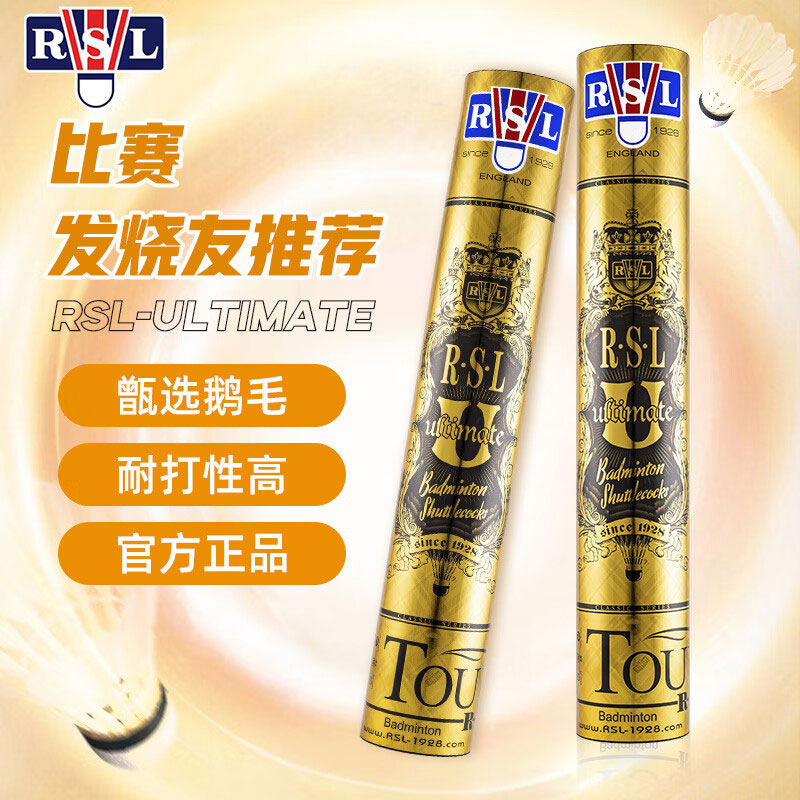 亚狮龙RSL 羽毛球 Ultimate 专业赛事级鹅毛球 稳定耐打比赛球 12只/筒 特级比赛用球 亚U