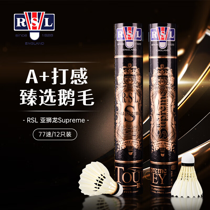 亚狮龙RSL 羽毛球 Supreme 专业赛事级鹅毛球 特级比赛用球 12只/筒 稳定耐打 亚S
