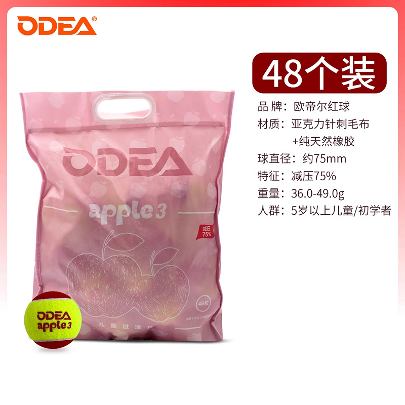 Odear欧帝尔网球 儿童网球软式无压网球过渡球减压训练球减压红球减压75% 整袋48粒
