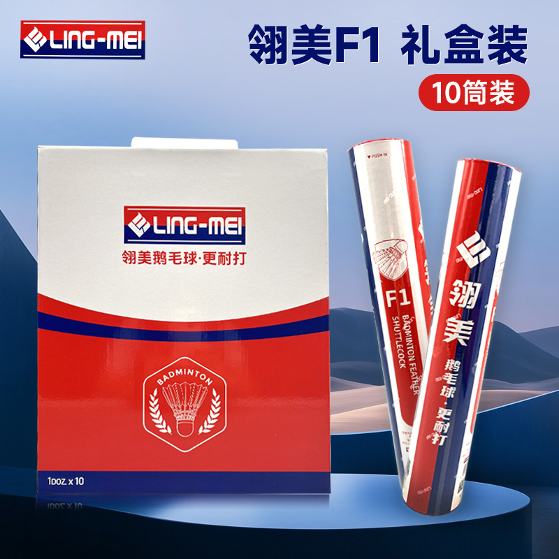 翎美羽毛球 F1 精选鹅毛 国际大赛用球 10筒礼盒装