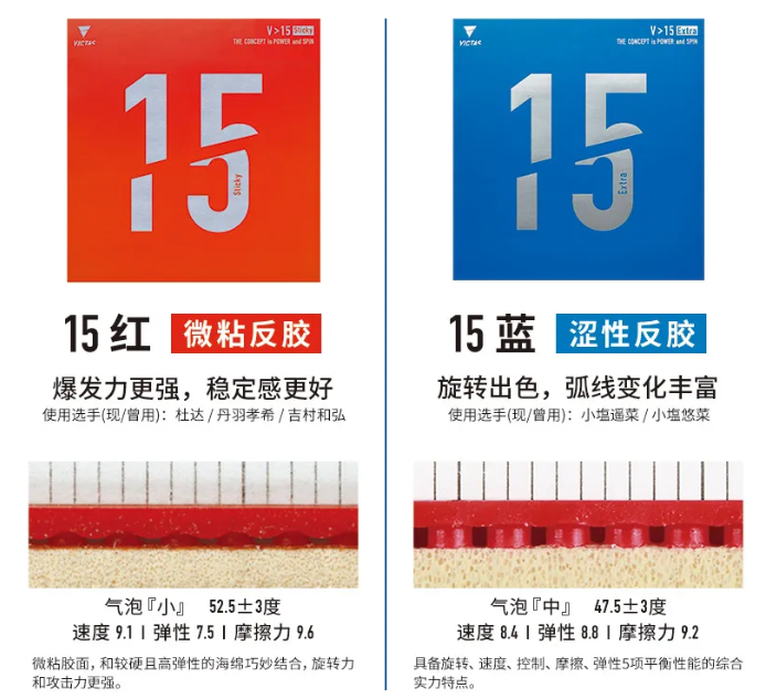 15红和15蓝各有什么优势?15红蓝系列反胶到底应该怎么选?