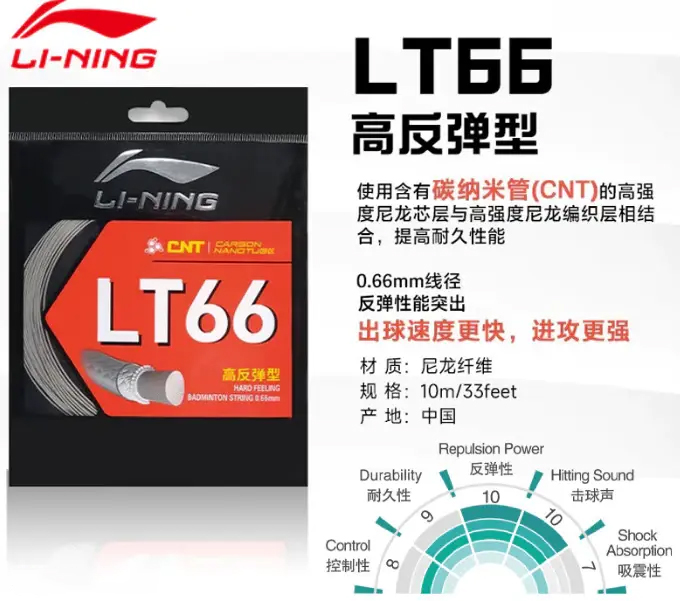 总的来说,李宁 LT66 羽毛球线在弹性、控球性能和击球音效等方面具有明显优势,适合追求高弹性和精准控球的中高水平进攻型选手。