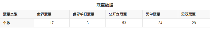 2005年,获世乒赛男单和混双项目冠军,入选国际乒联名人堂。
